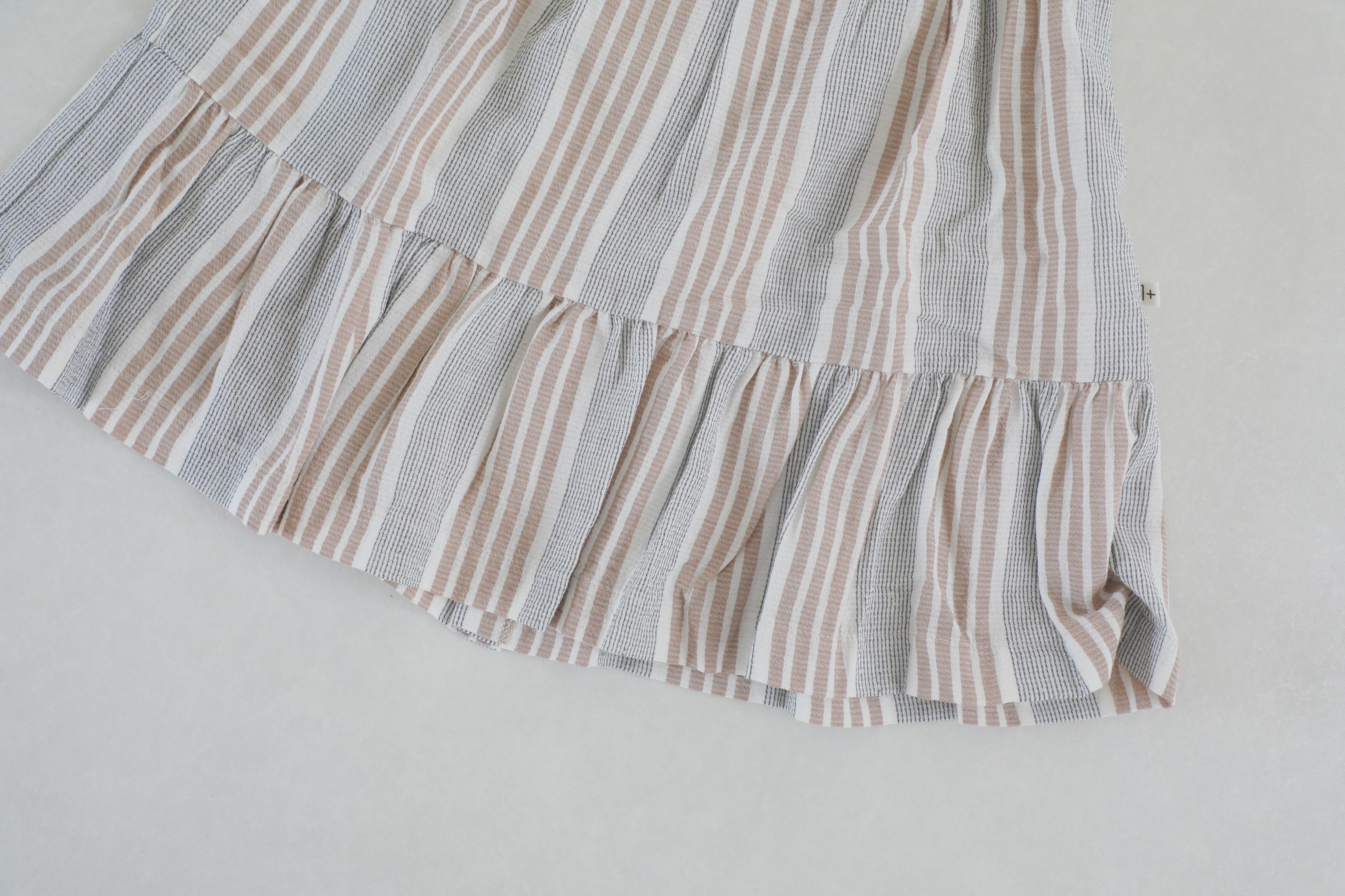 肩フリルとフレアに広がるシルエットが女の子らしく、
