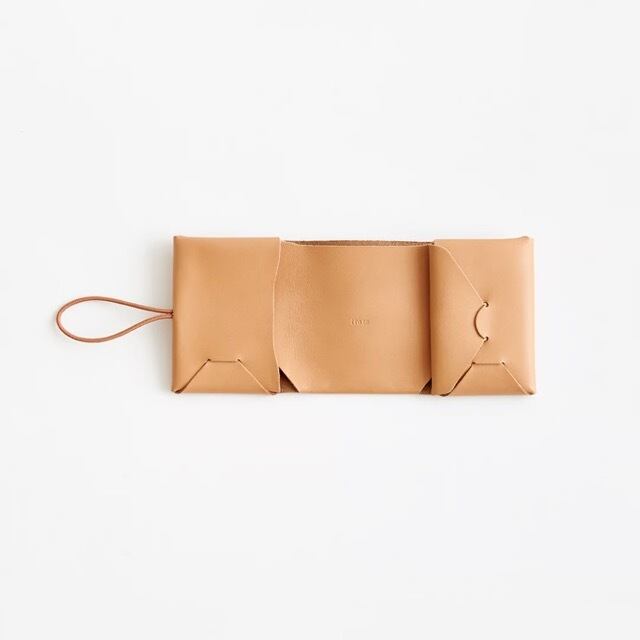 一枚の革を折り込んで組み立てた3つ折り財布。