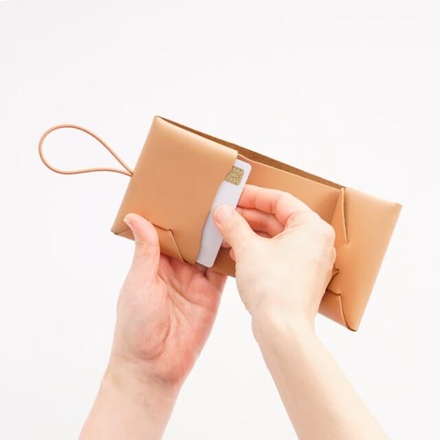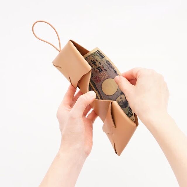 一枚の革を折り込んで組み立てた3つ折り財布。
