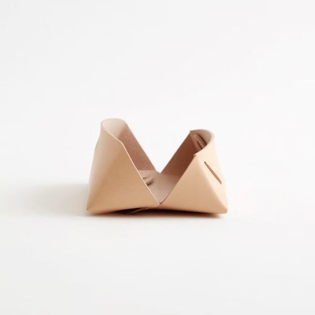 一枚の革を縫製せずに折りこんで組み立てたり、