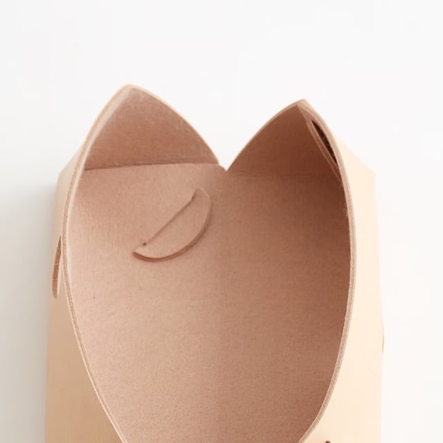 開いた状態でも自立するので、中に入れたものを取り出すのもスムーズ。開いたままデスクに置けばトレイのようにもお使いいただけます。