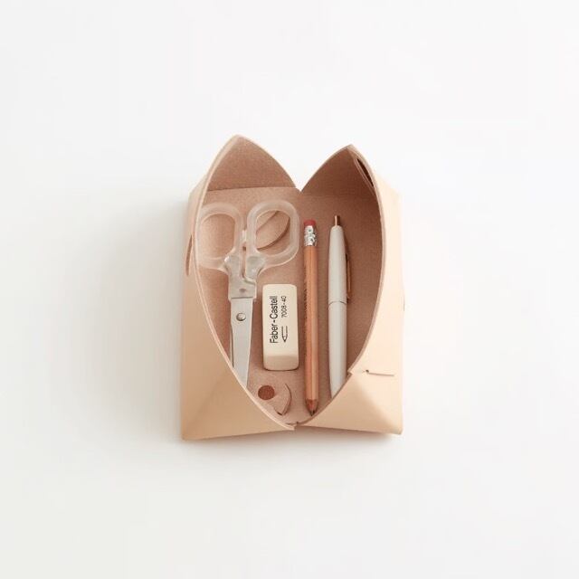 一枚のパーツを折り込んで組み立てたシンプルな構造のメガネ/ペンケース。