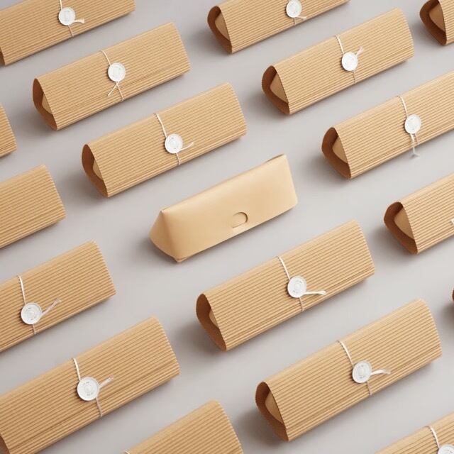 一枚のパーツを折り込んで組み立てたシンプルな構造のメガネ/ペンケース。
