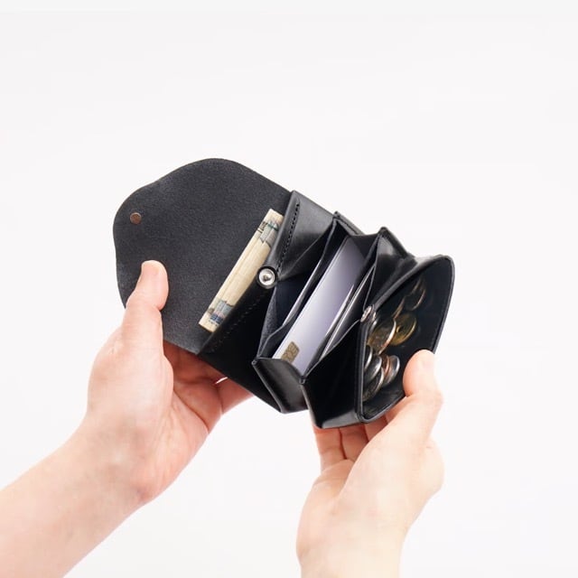 一枚革を折り込んで作られたポケットや小さめのバッグにも入るコンパクトなミニ財布。