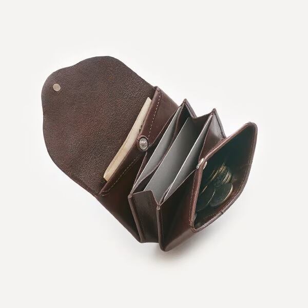 一枚革を折り込んで作られたポケットや小さめのバッグにも入るコンパクトなミニ財布。