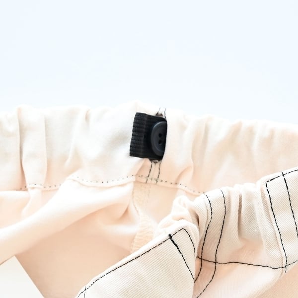 ウエストは全周ゴム仕様。アジャスターがついているので、調節可能です。