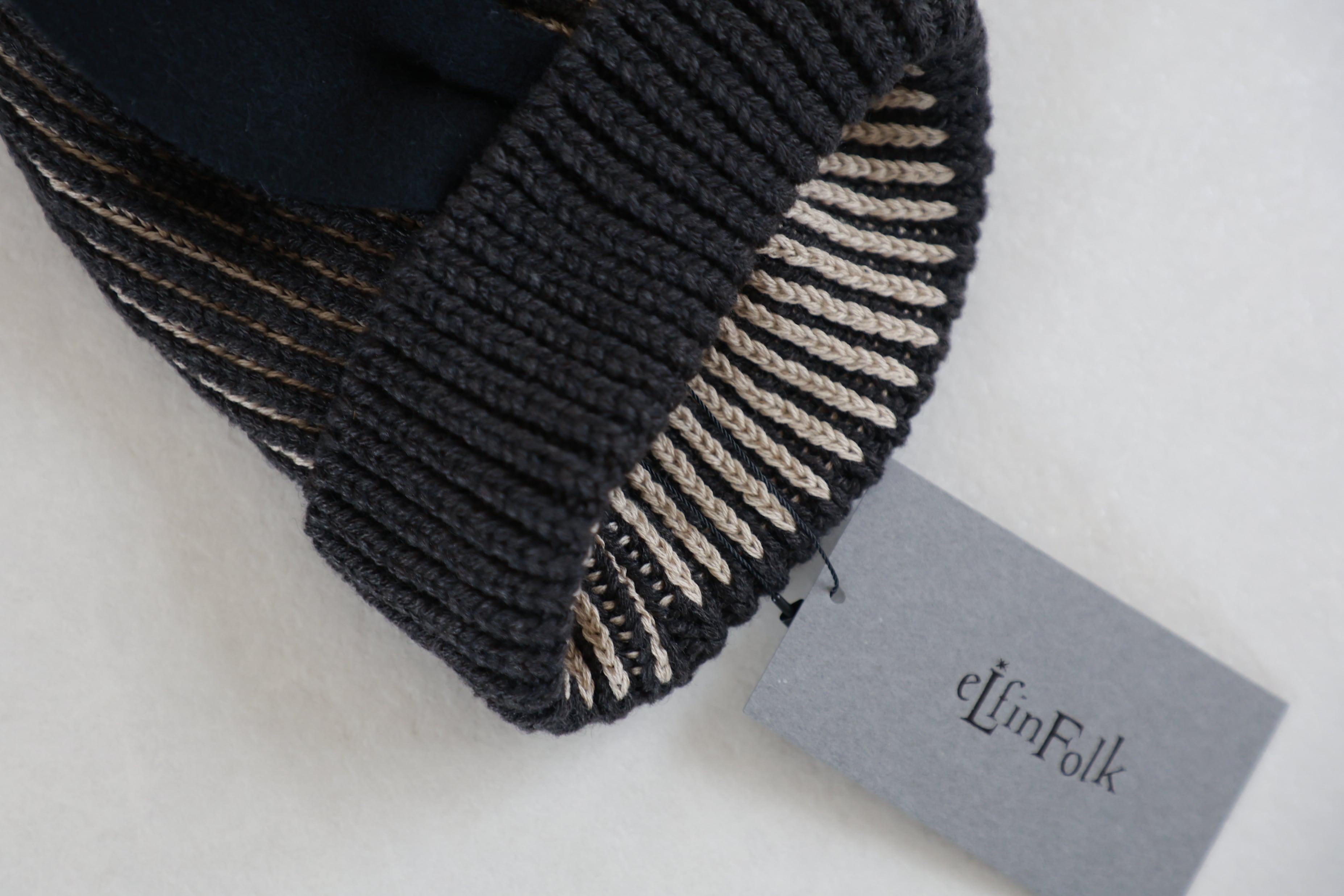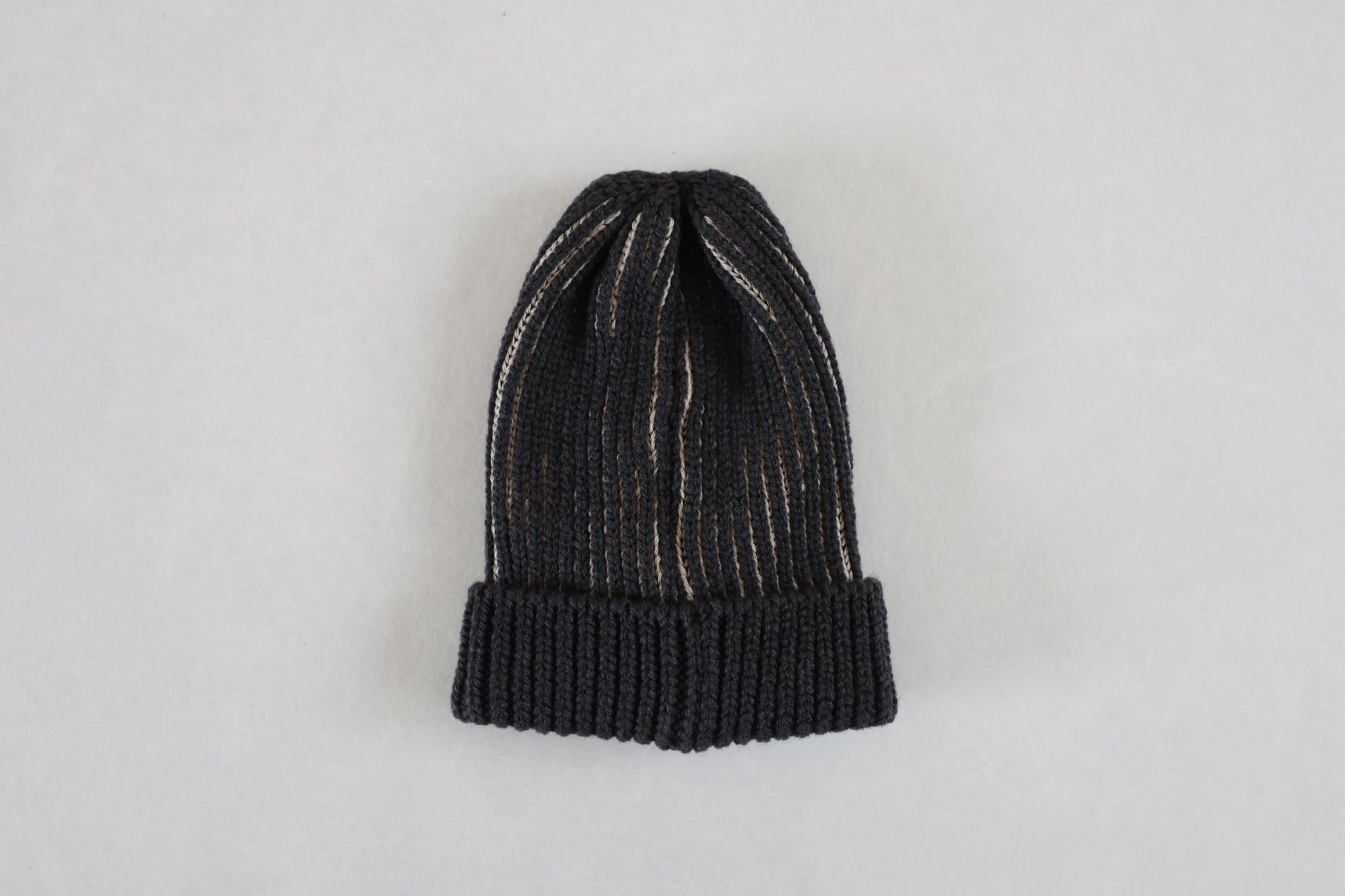 アクリルウール糸とコットン糸の2色をストライプに見えるように両あぜで編んでいます。