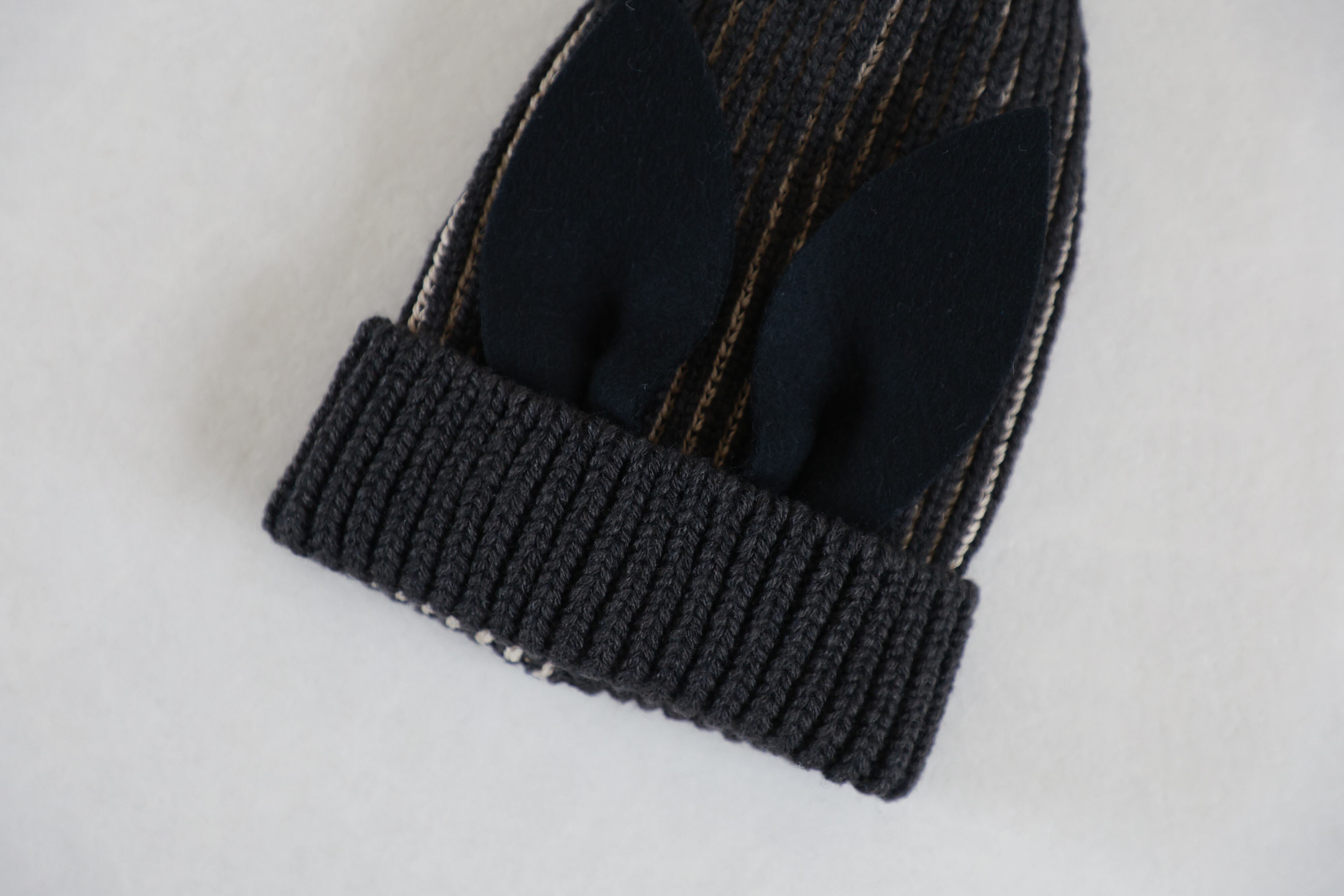 毎シーズン人気の、フラノウールの耳をつけたニットキャップのビーストビーニー。