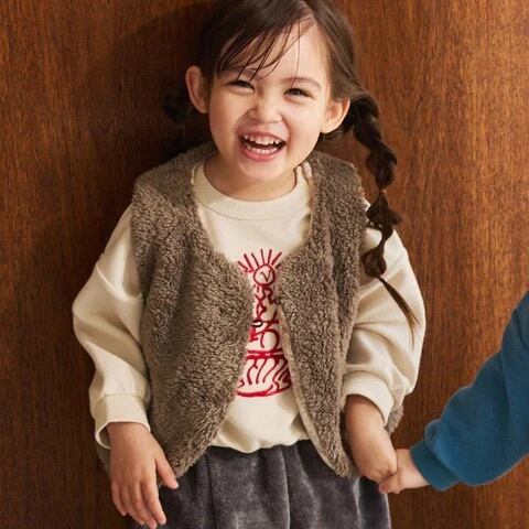 ふわふわのボア素材が可愛らしいリバーシブルベスト。