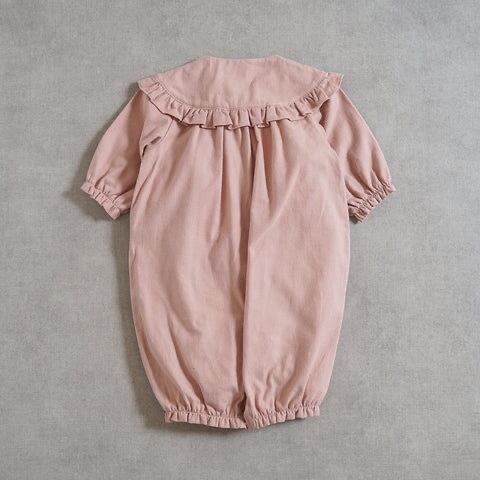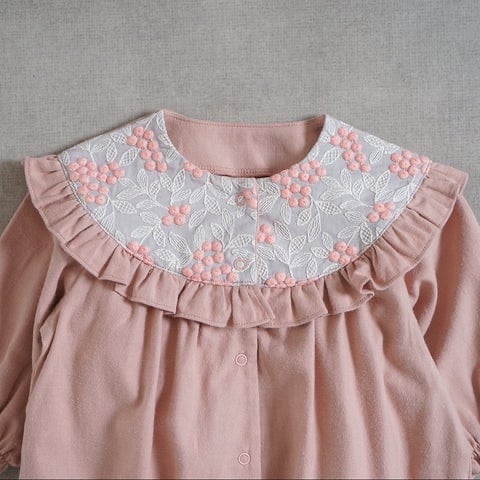 木の実の立体的な刺繍生地をあしらったベビードレス。