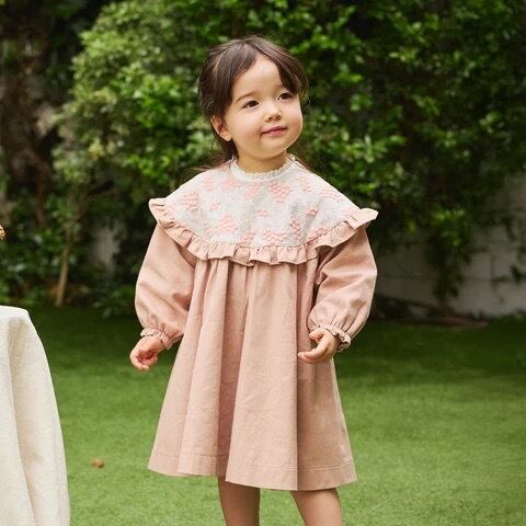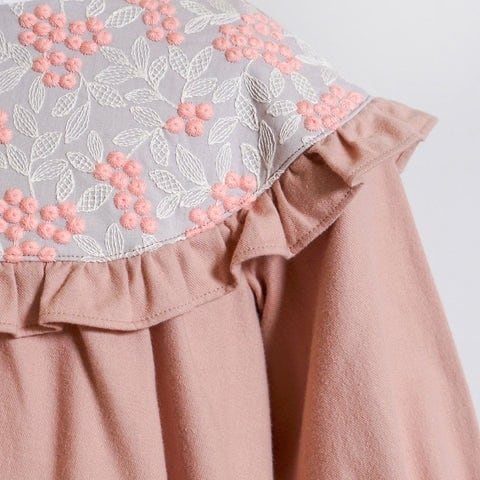 木の実の立体的な刺繍生地をあしらった可愛らしいワンピース。