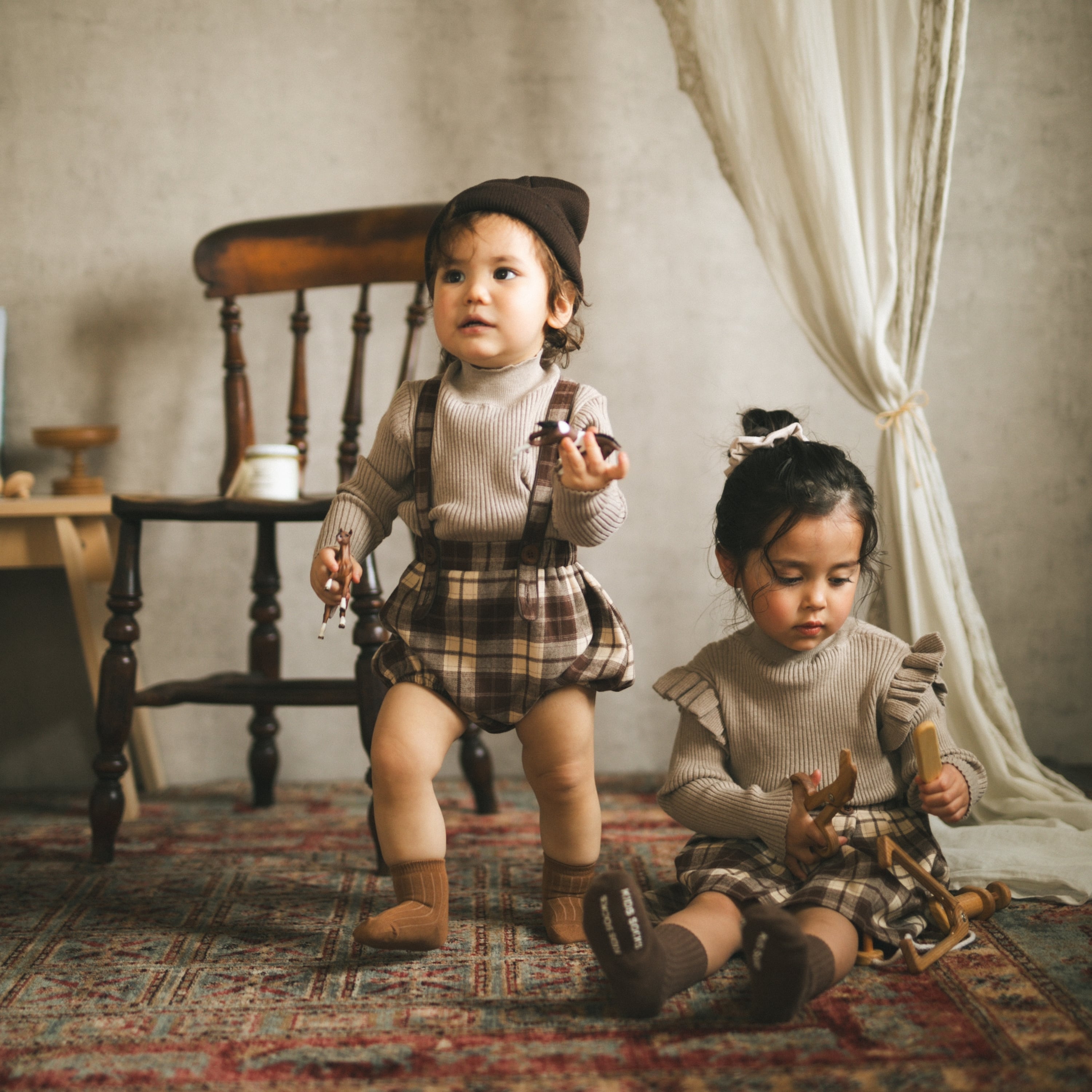秋冬らしさがギュッと詰まったサスペンダー付きブルマ。