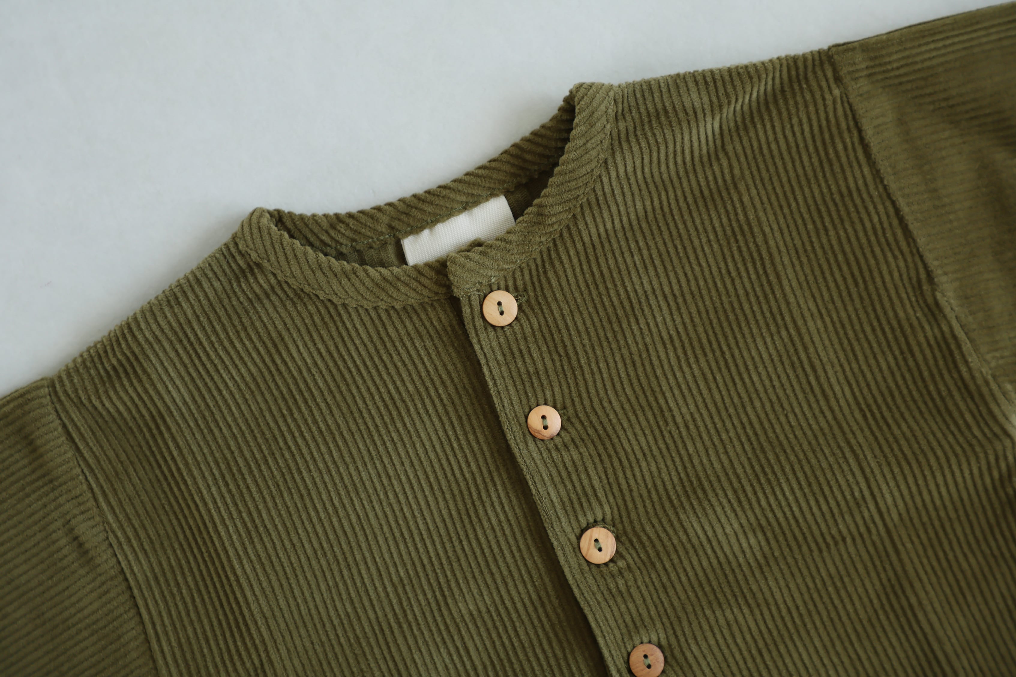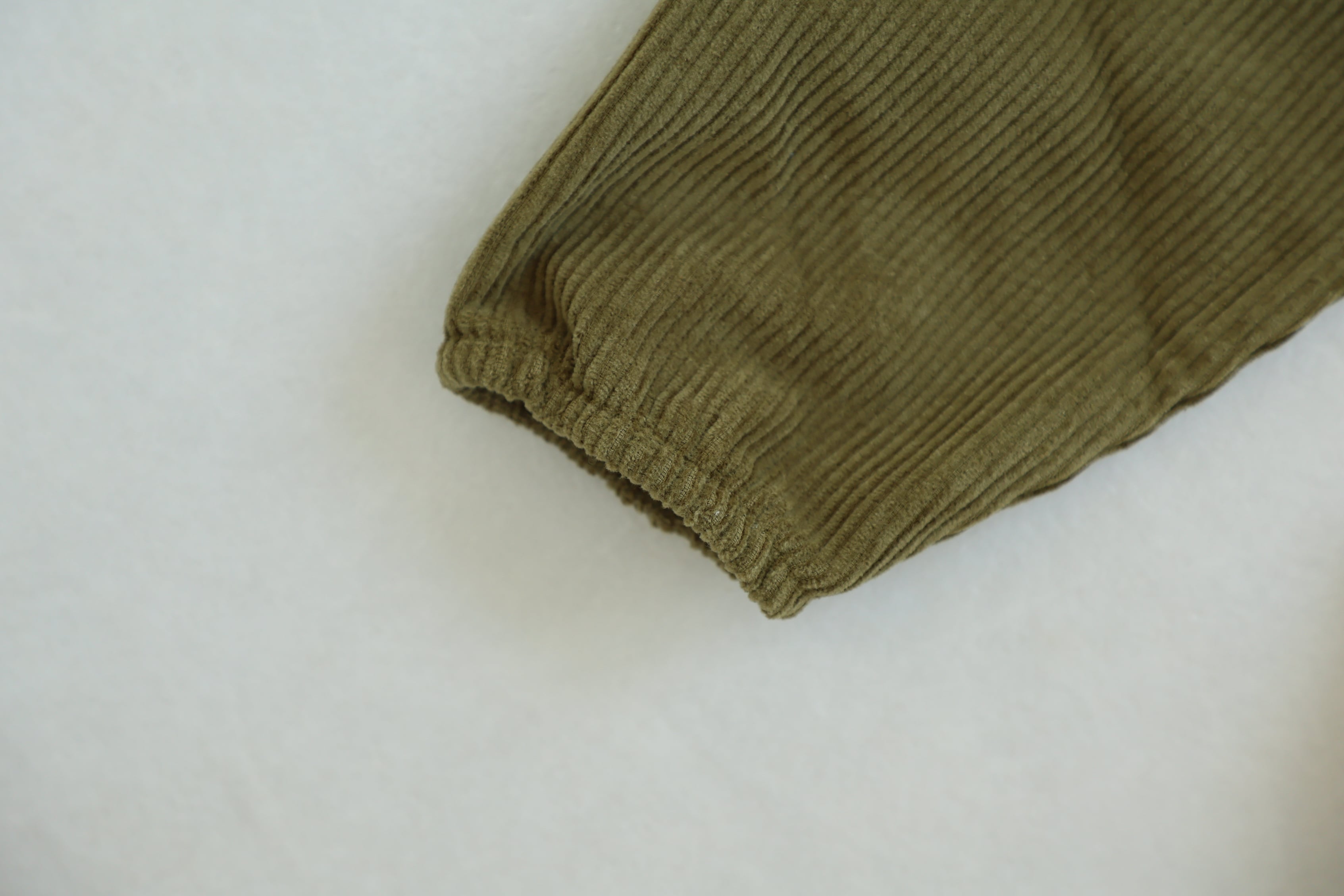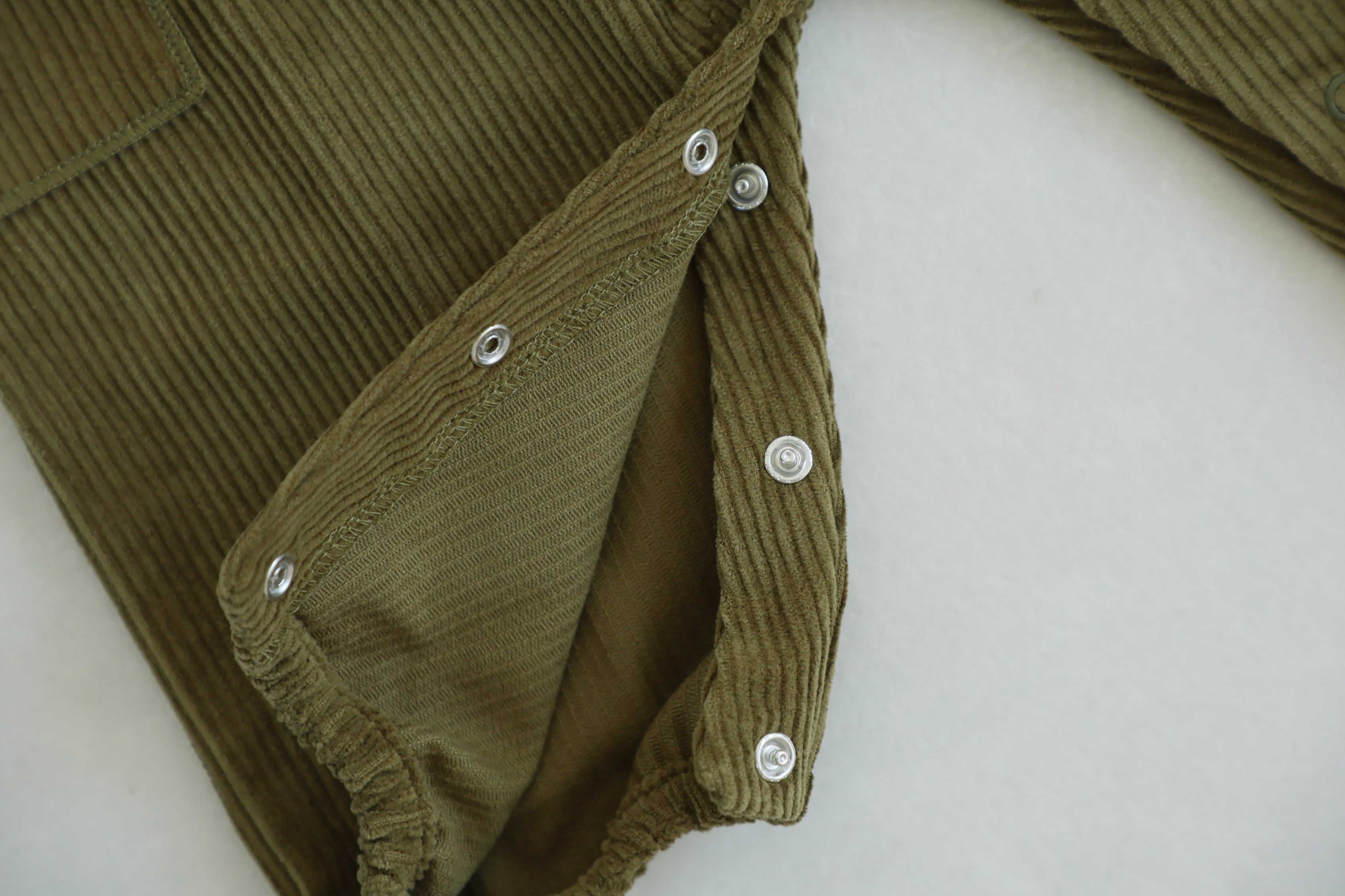 秋冬にぴったりなコーデュロイ素材のロンパース。