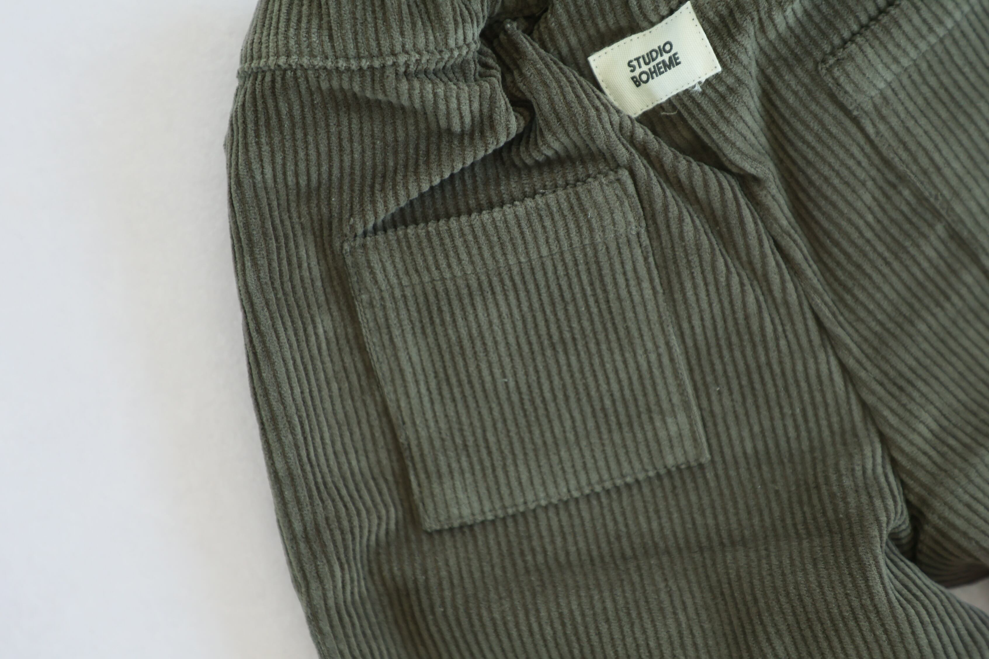 シンプルでどのトップスに合わせやすいコーデュロイパンツ。