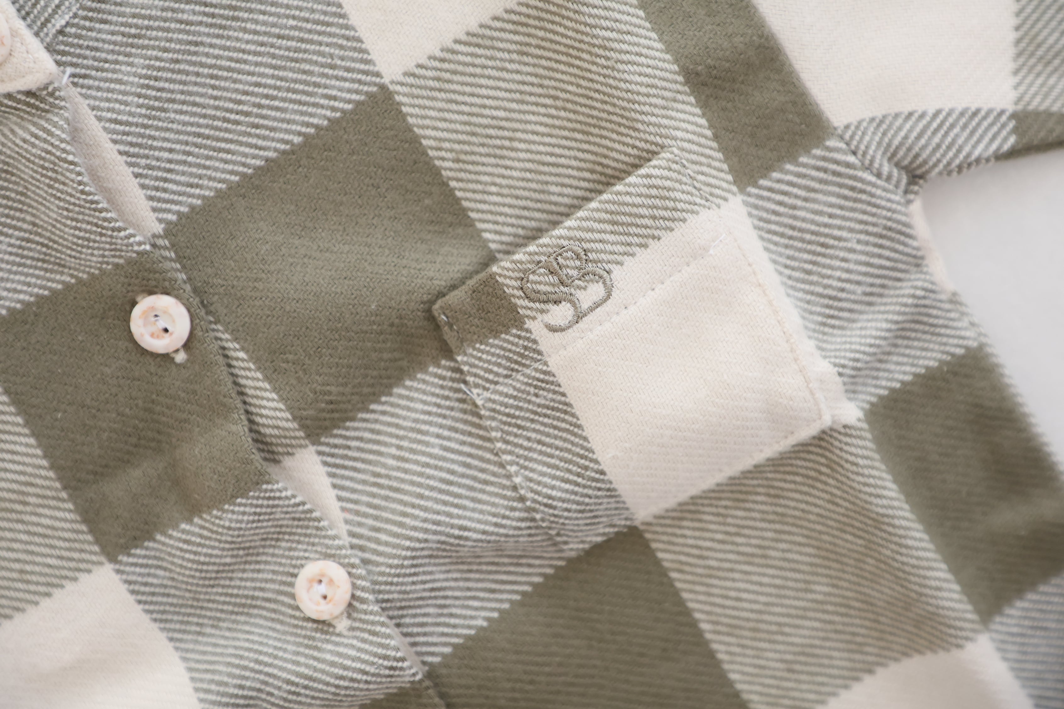 STUDIO BOHEME / JIM SHIRT / KAKI GINGHAM / 18M、24M