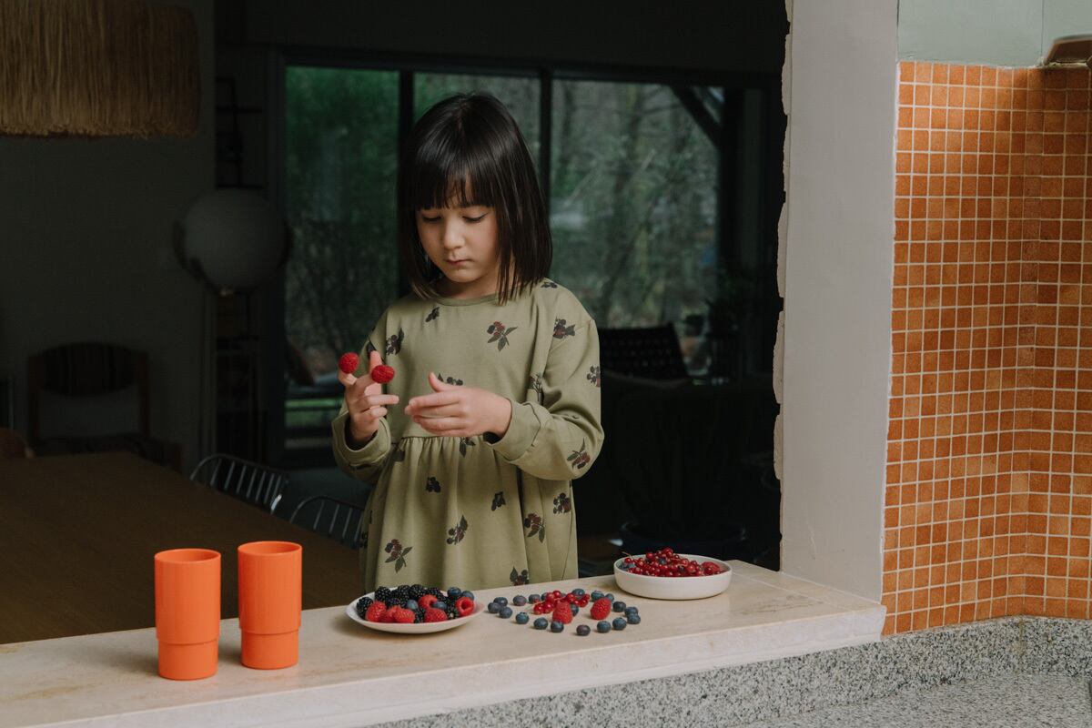 STUDIO BOHEME / HOY DRESS / GREEN ALOE × BLACKBERRIES / 36M、4Y