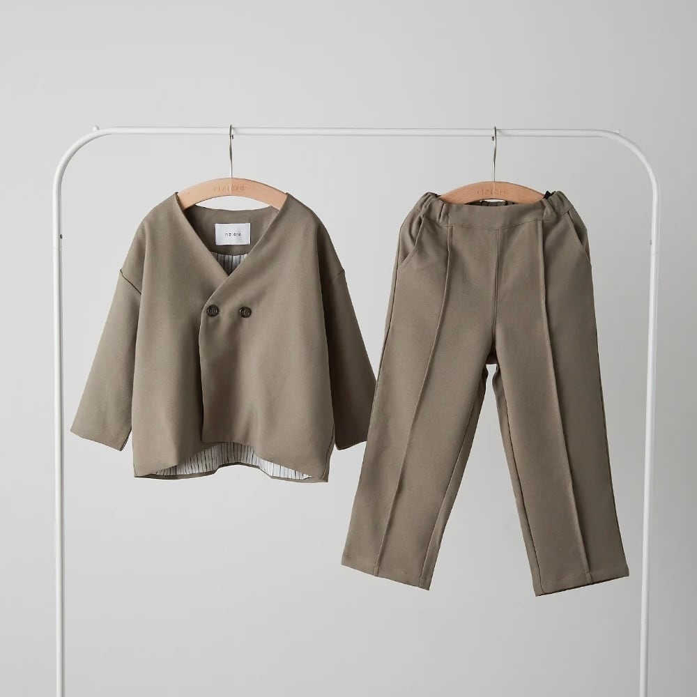 rizière / ノーカラージャケットセットアップ / khaki beige / 120cm