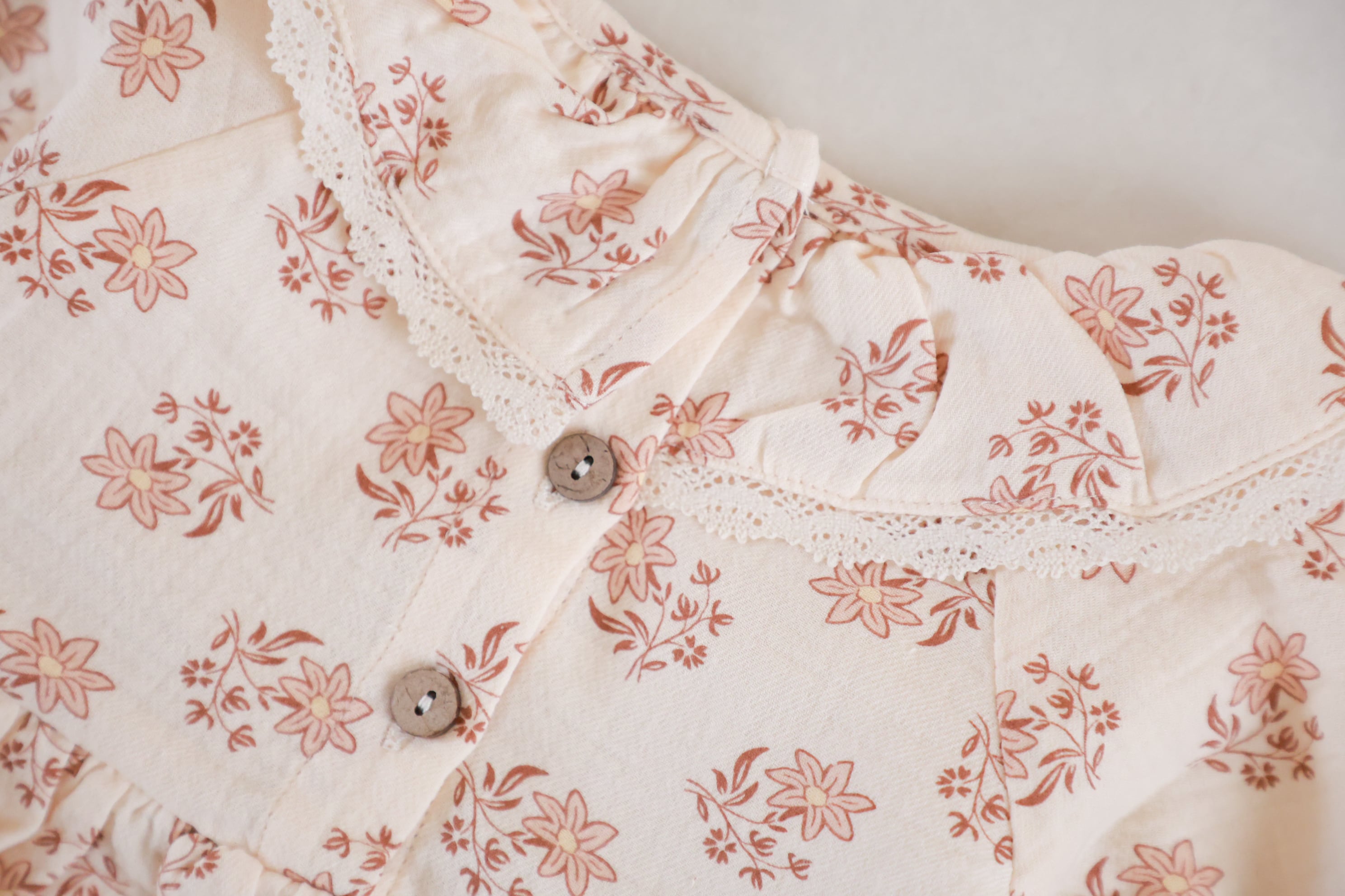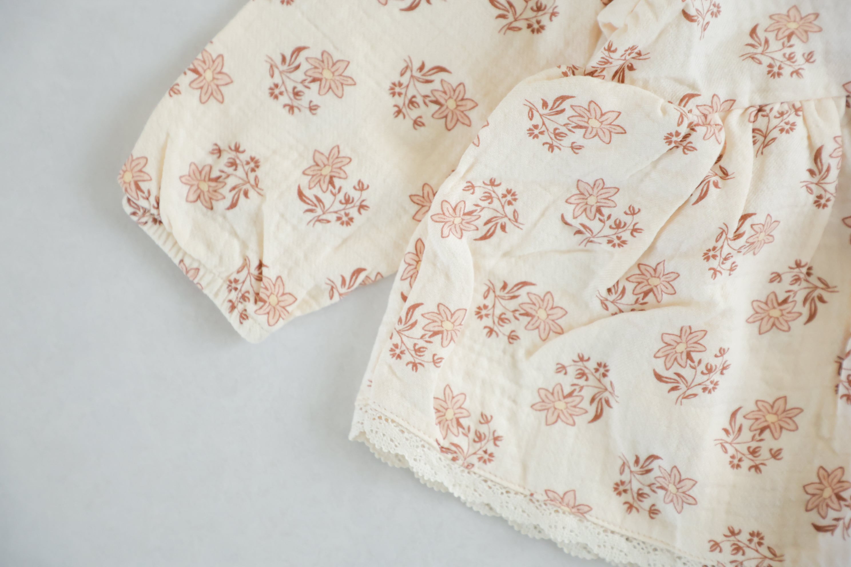 オーガニックコットンを使用したガーゼ素材のロンパース。