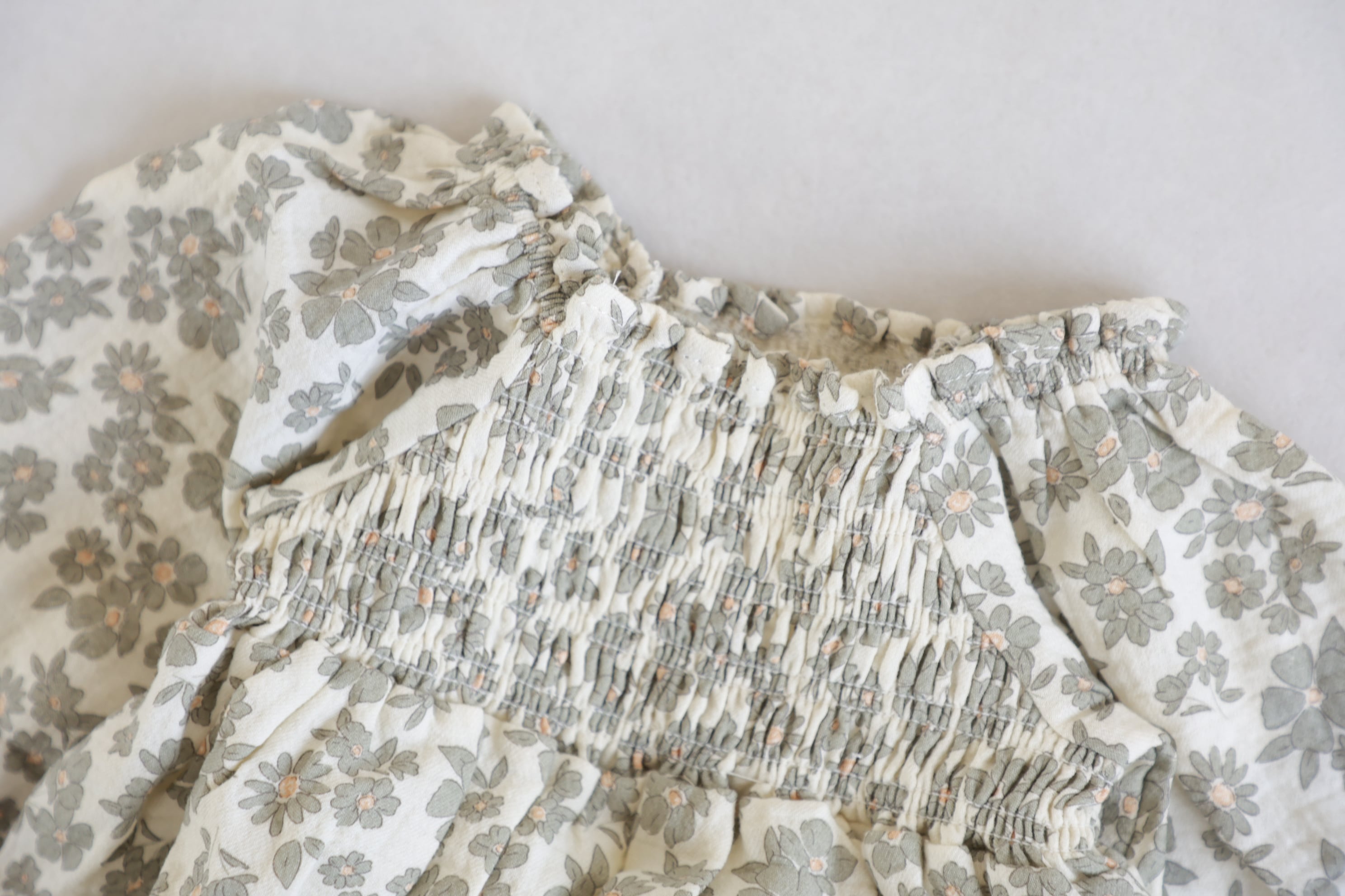 ナチュラルで上品なお花柄のロンパース。