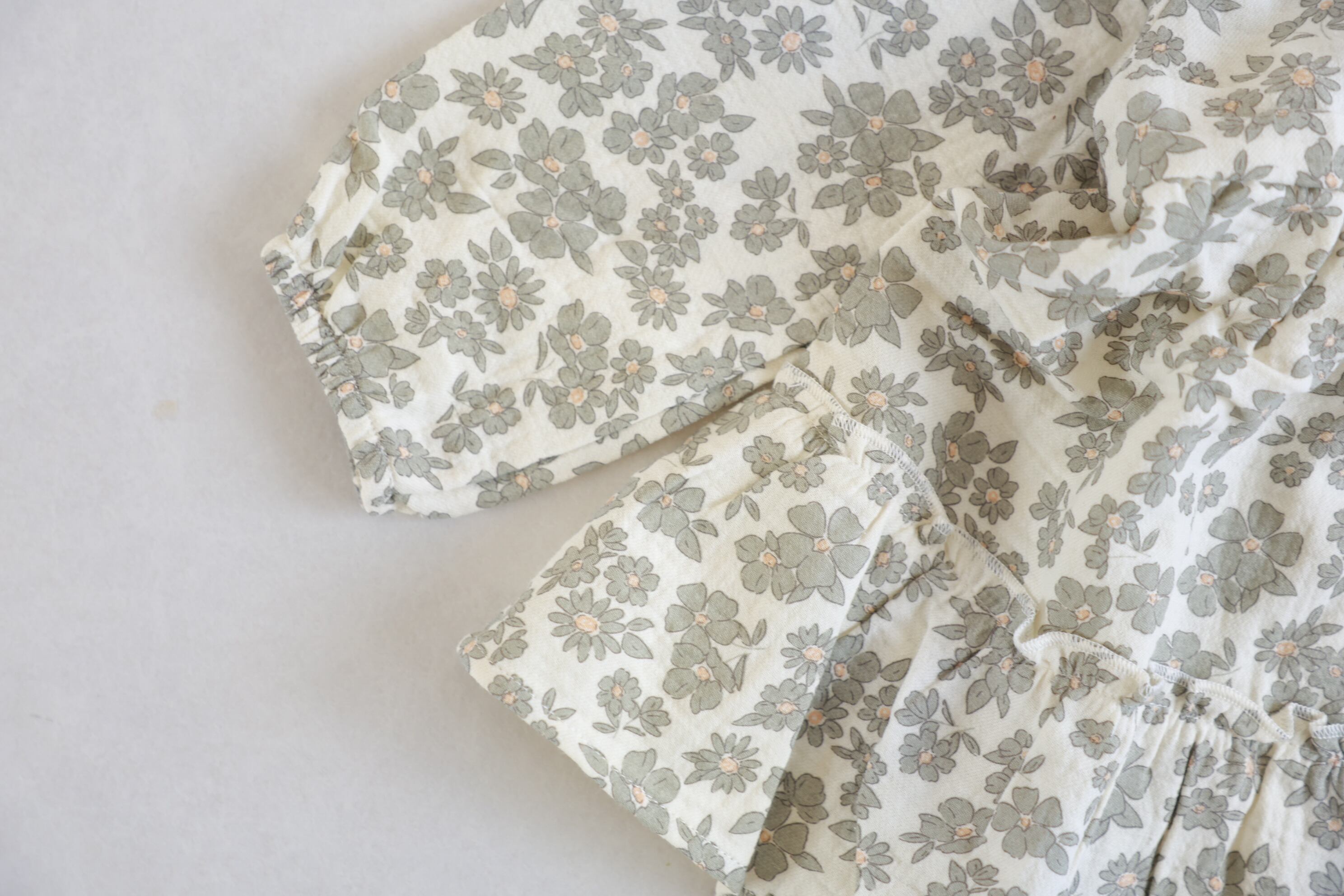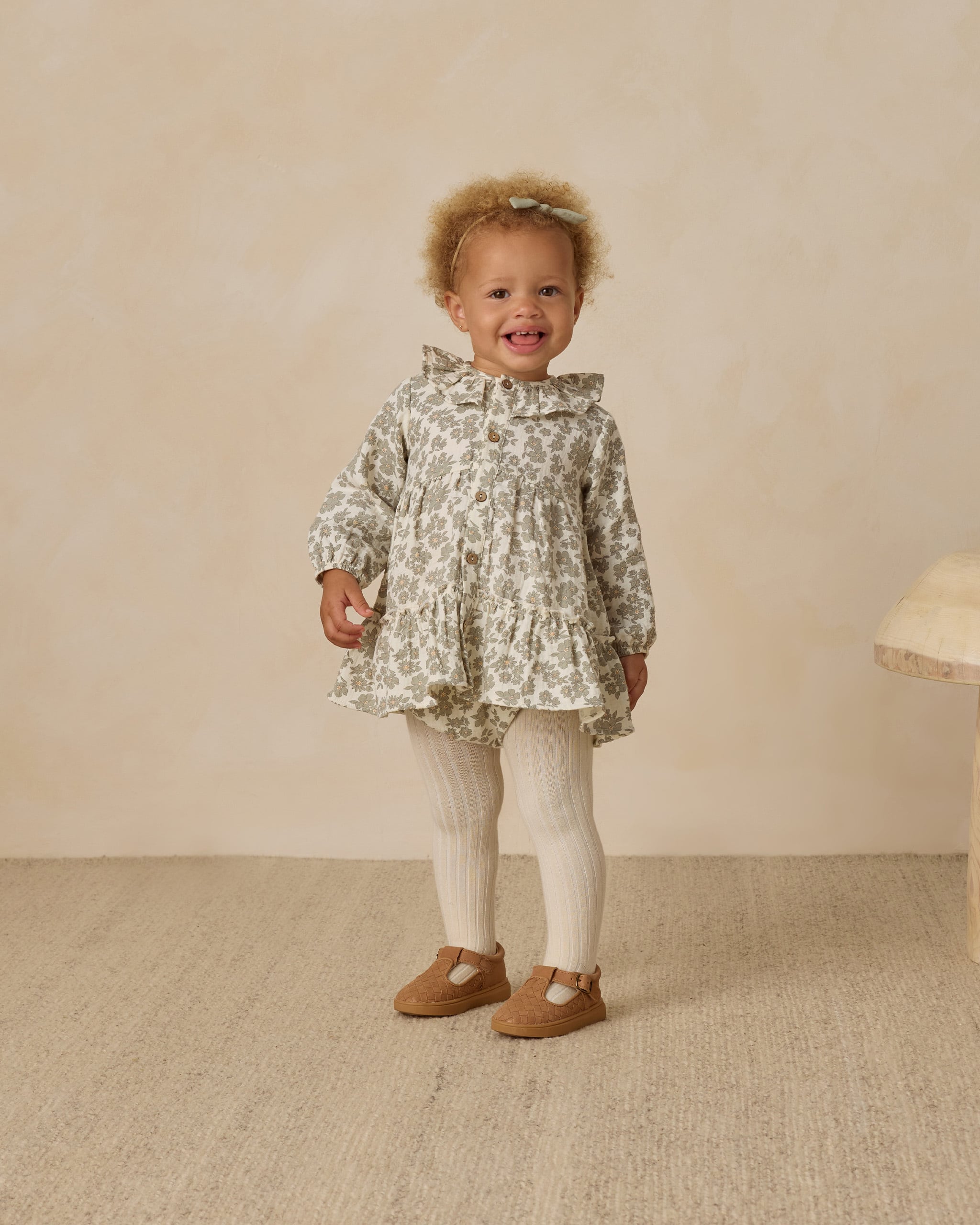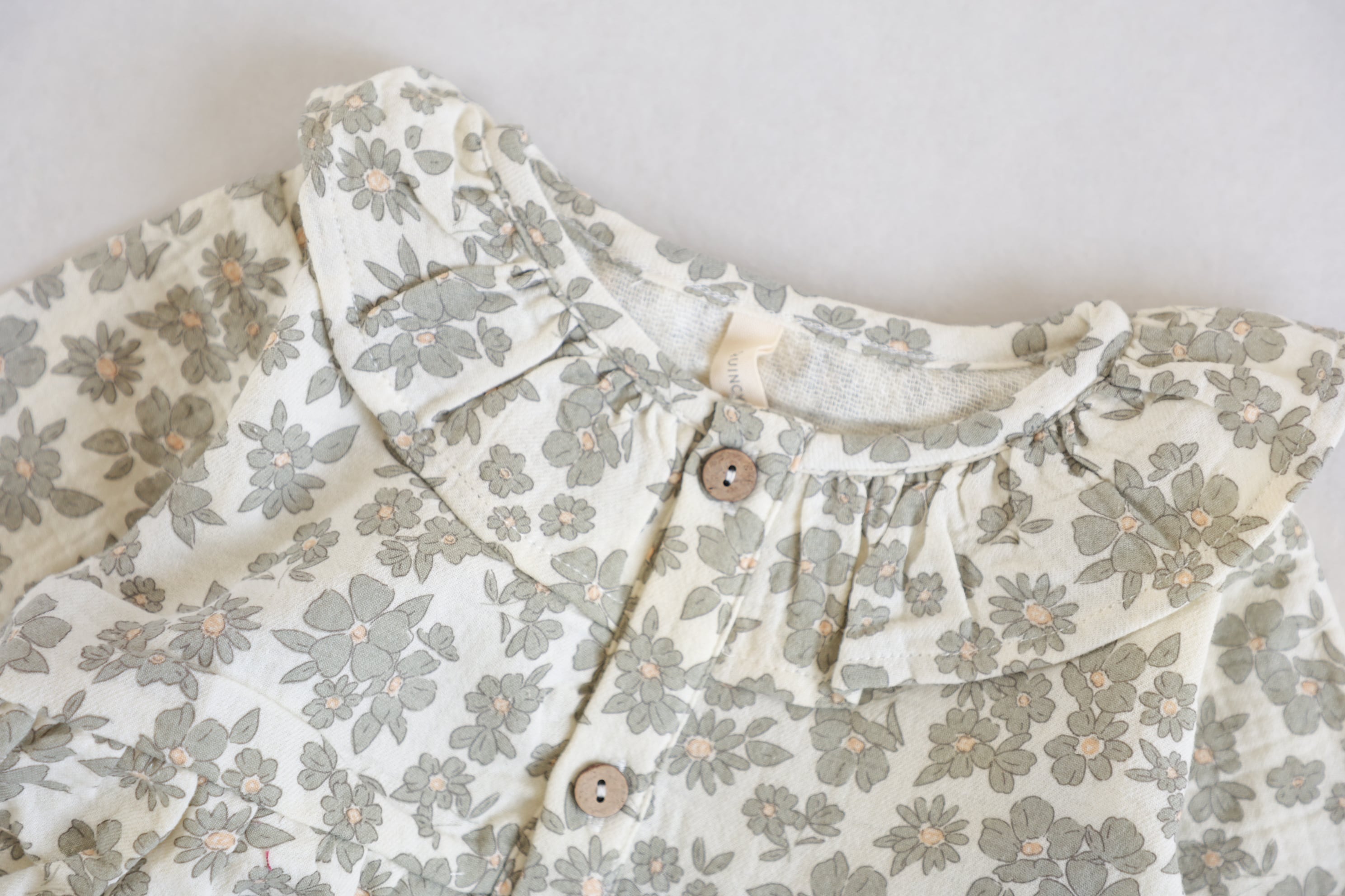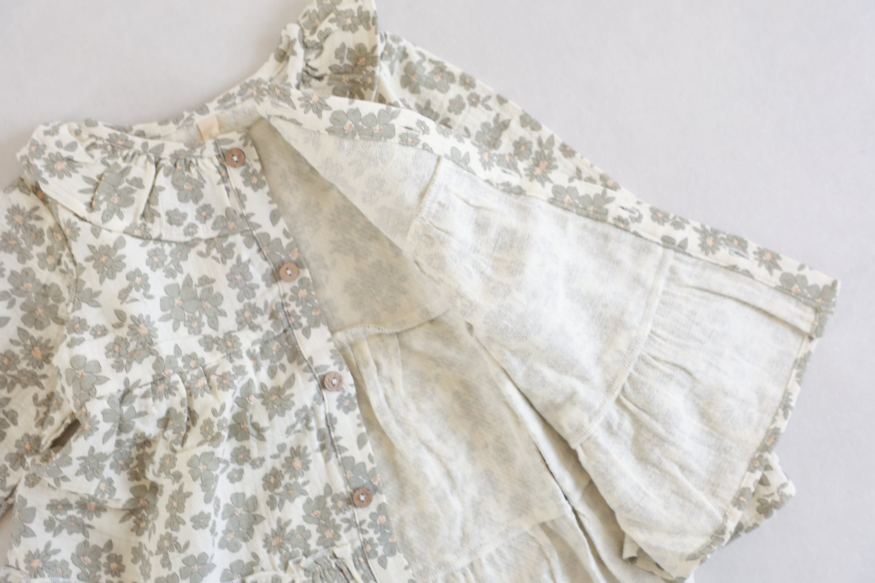 Quincy Mae(クインシーメイ) / 25aw RUFFLE COLLAR BUTTON DRESS / GREEN FLORAL / 12-18M・18-24M・2-3Y