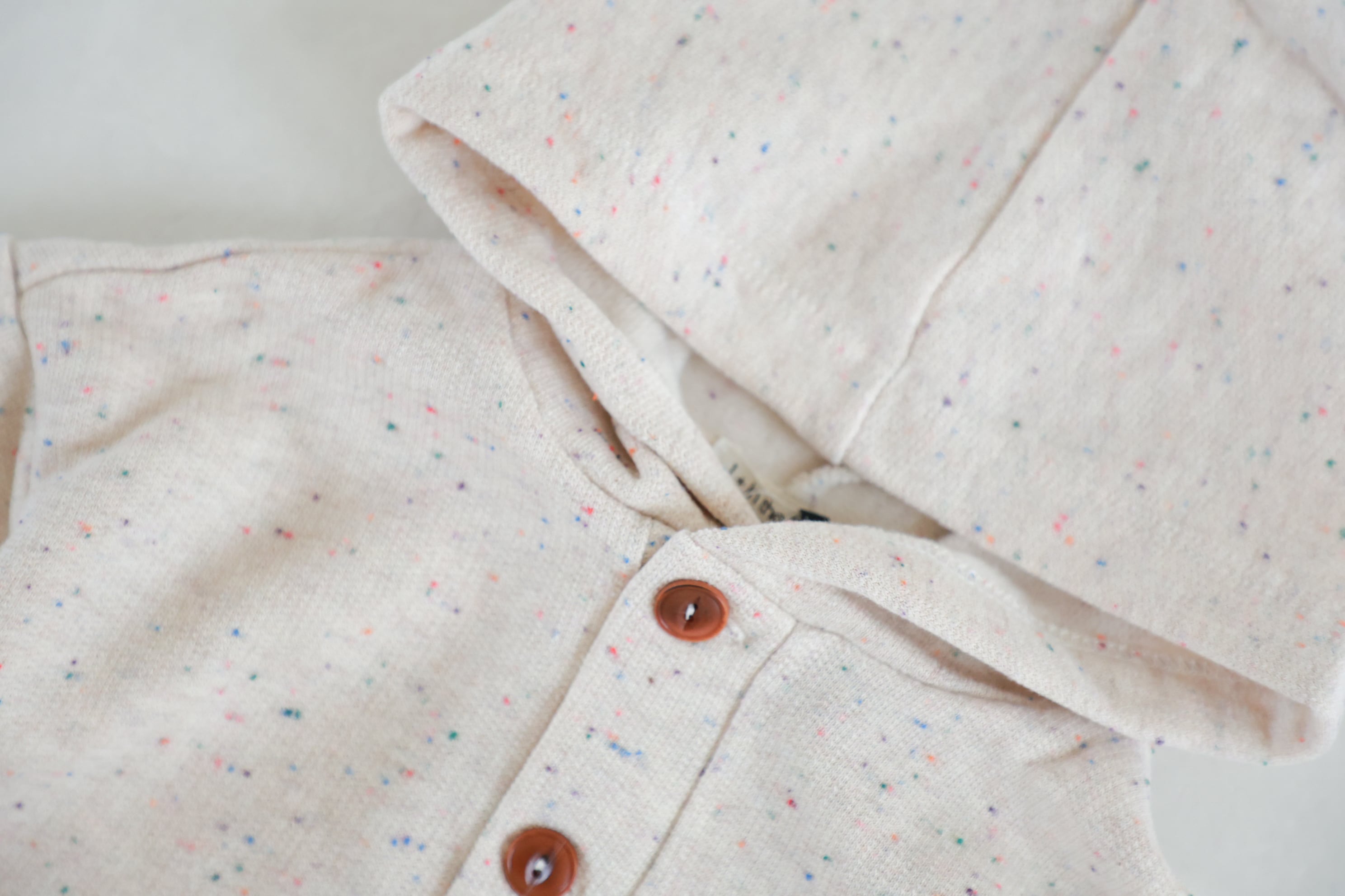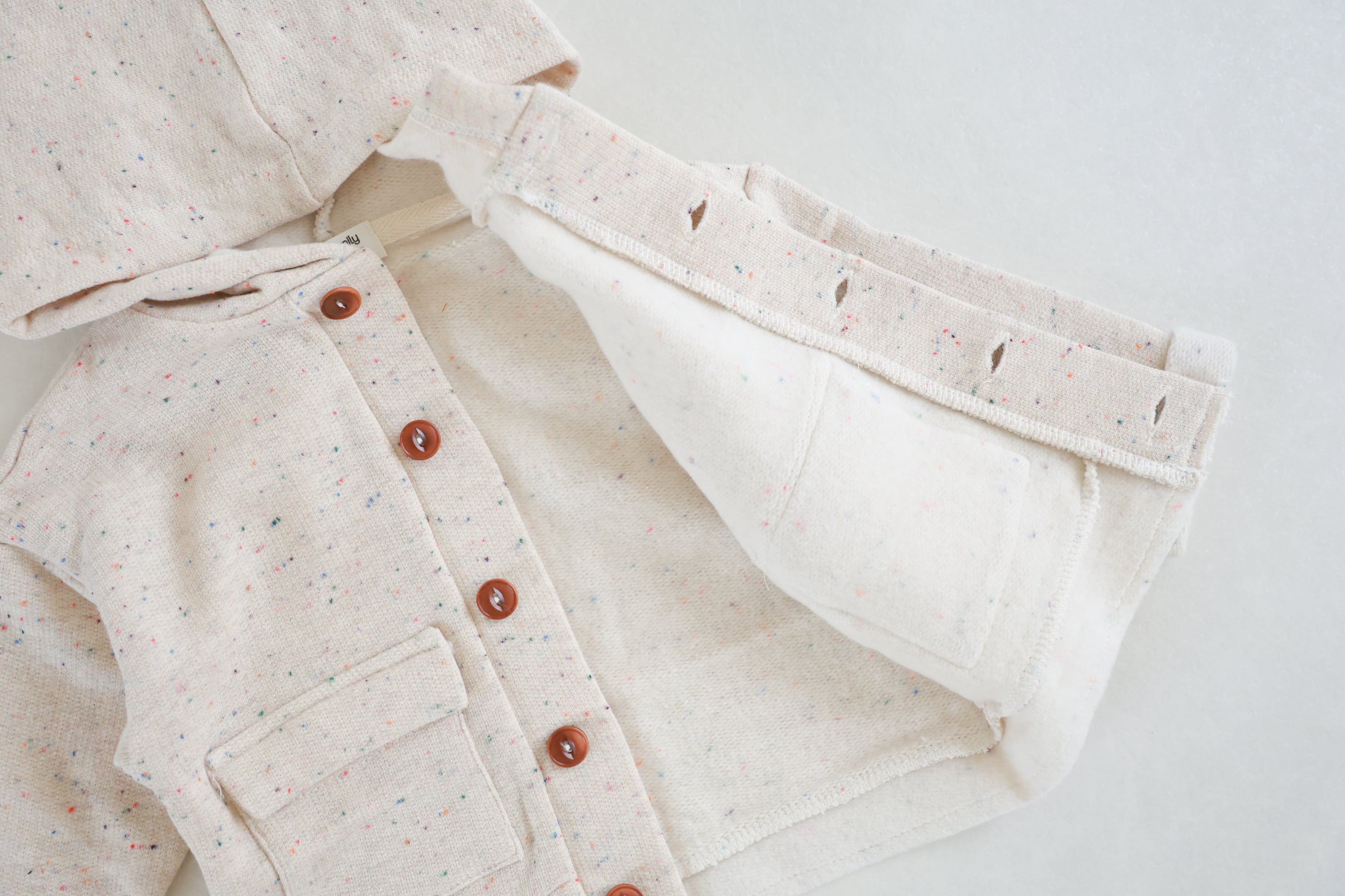 優しいナチュラルな雰囲気が可愛らしいフード付きパーカー。