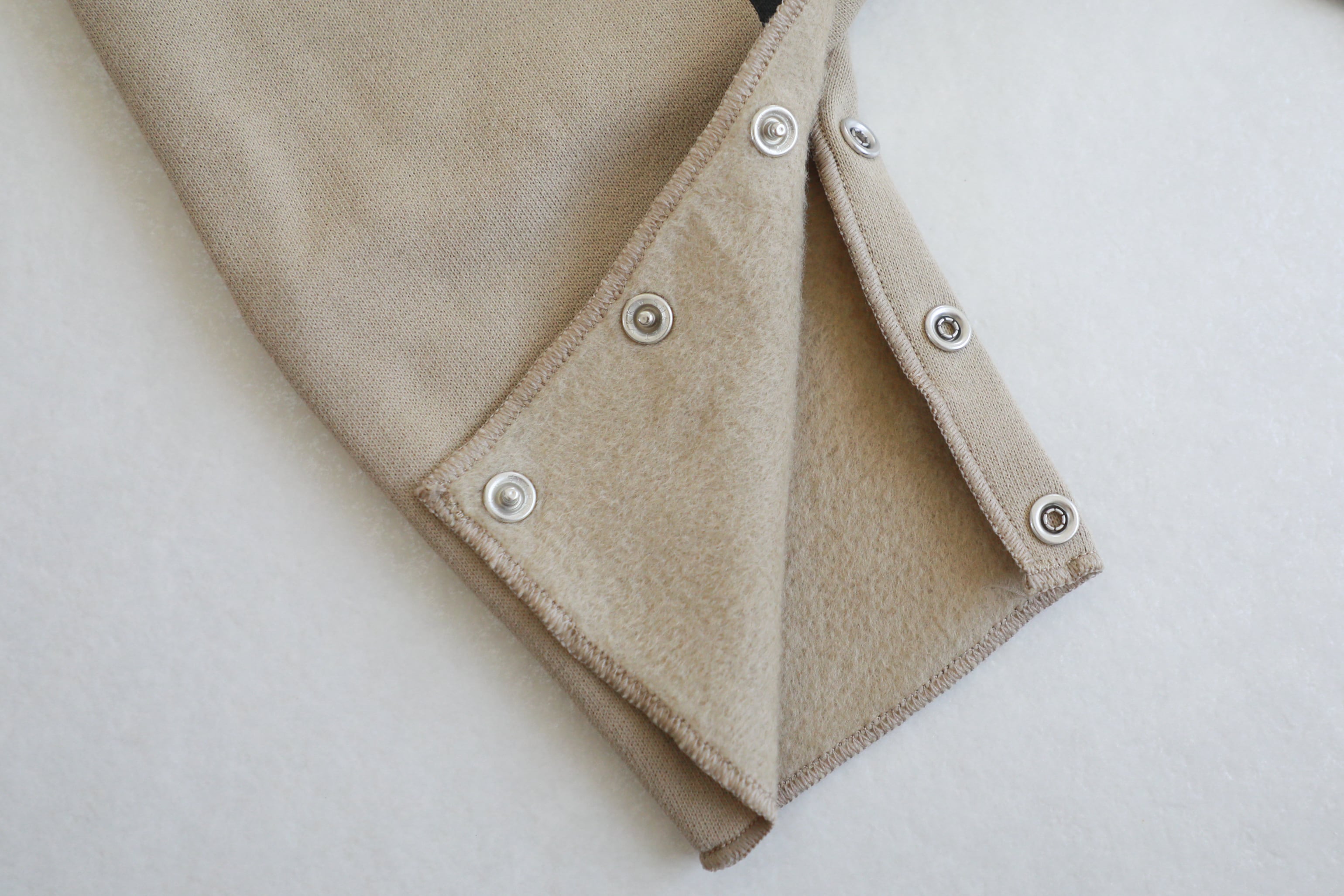 股の部分はスナップボタンでオムツ交換しやすい仕様になっています。