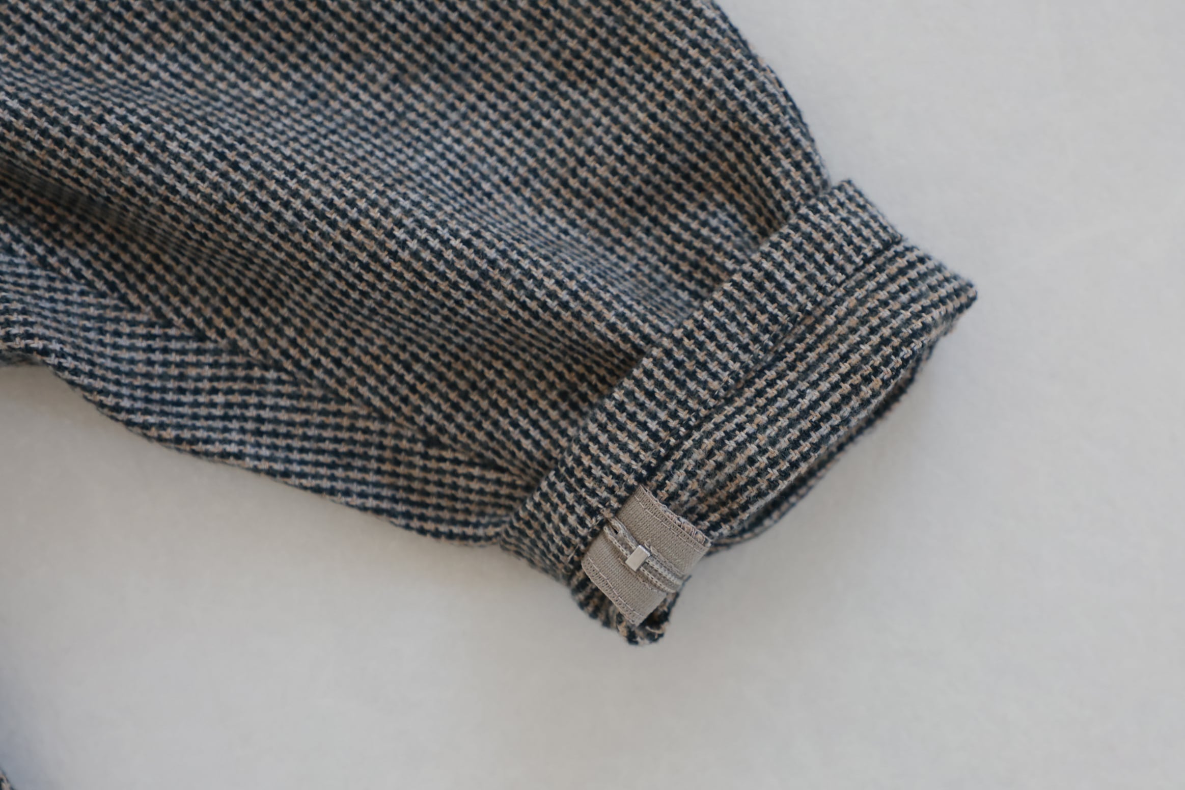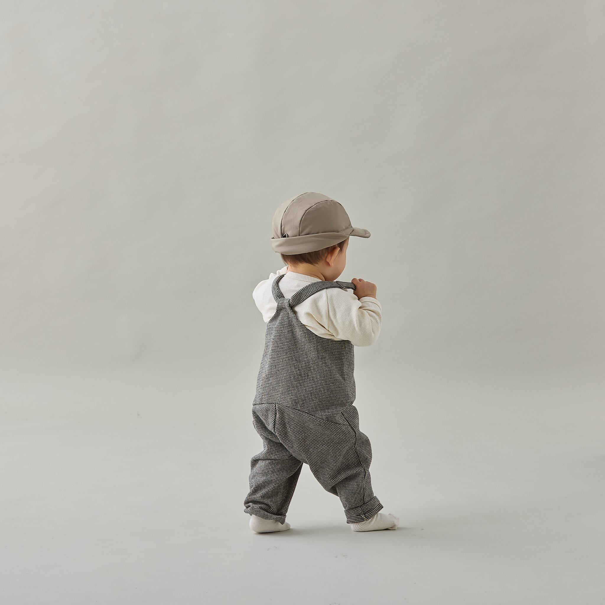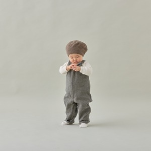 MOUN TEN.ではおなじみのサロペットを、ベビーサイズに落とし込み、やや厚手で起毛したコットン素材で、ウールの様な雰囲気ながらチクチク感のない、ソフトな肌触りのコットンツイードを使用しました。