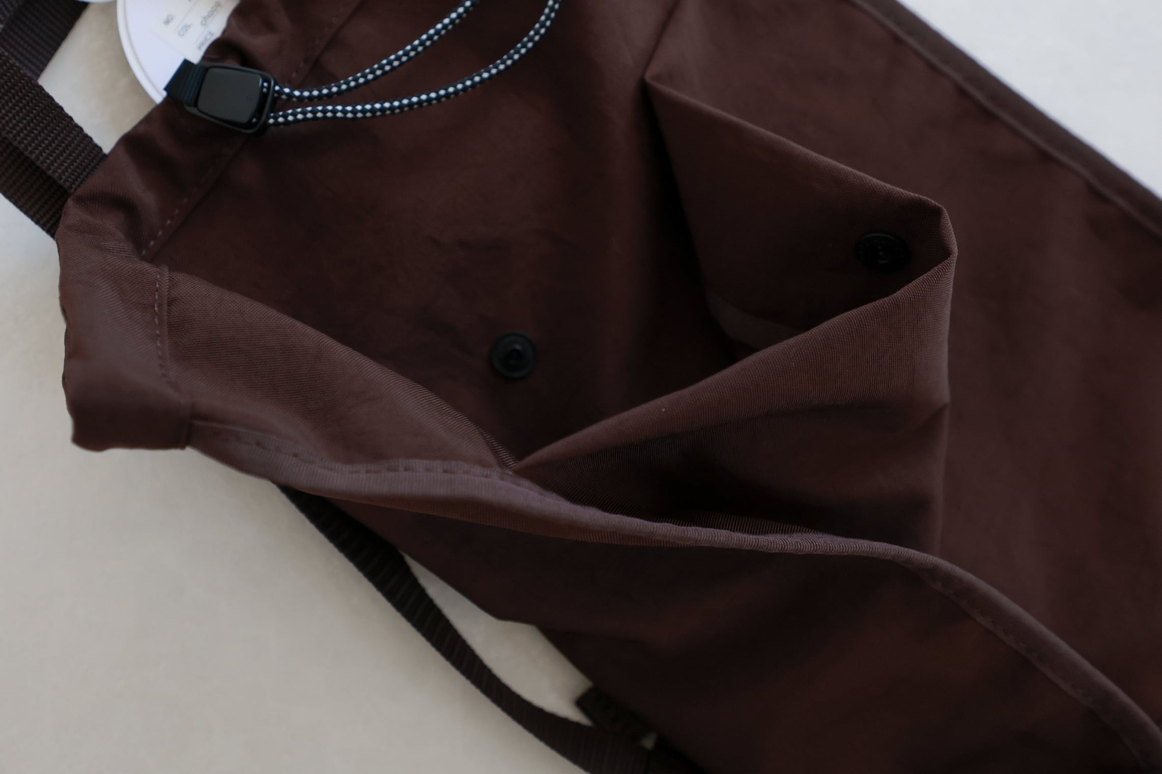 バッグ口はドローコードで絞る、ナップザックタイプ。