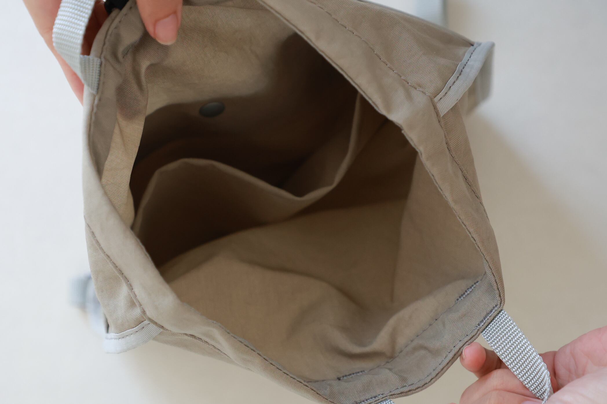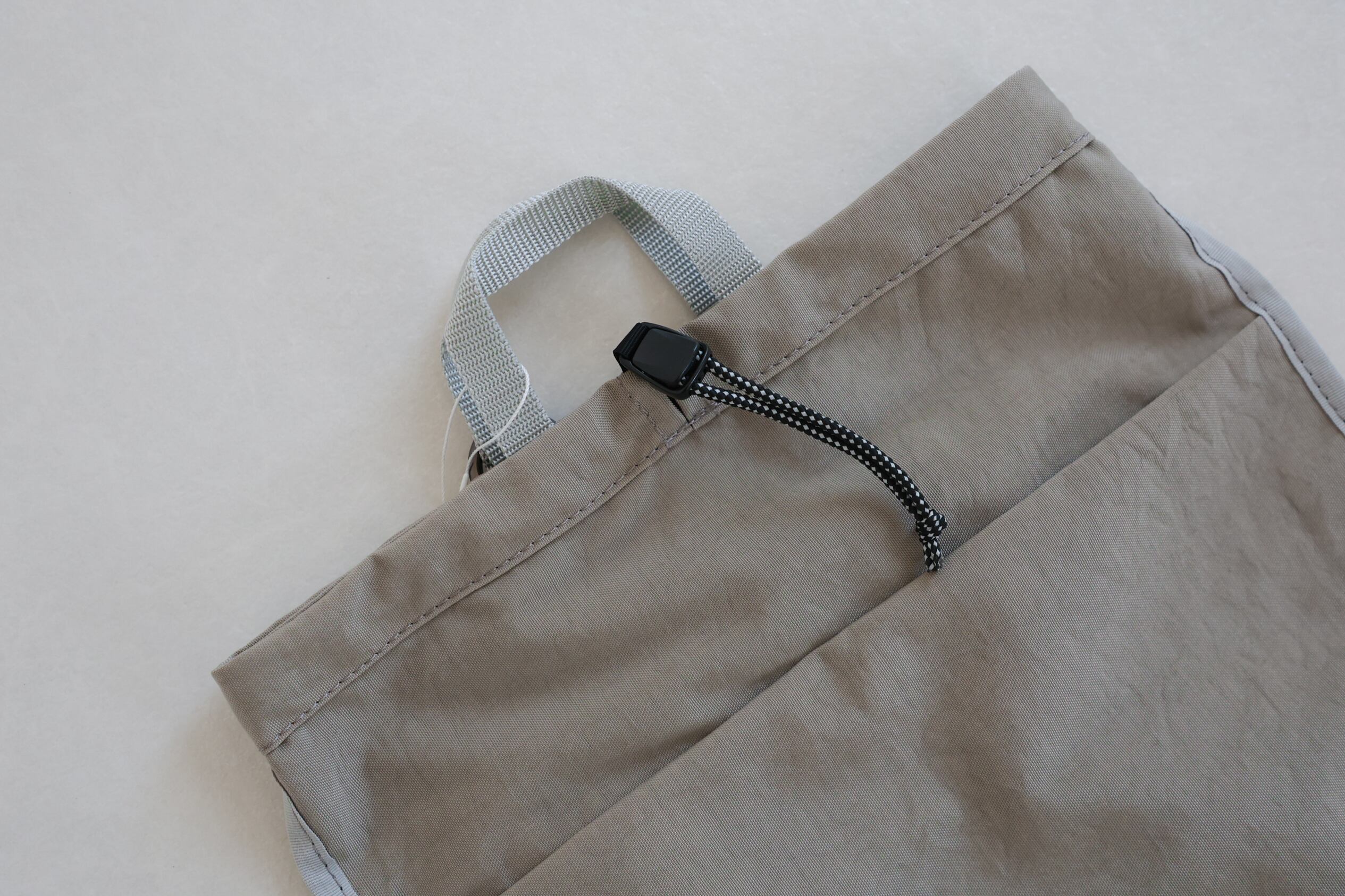 バッグ口はドローコードで絞る、ナップザックタイプ。