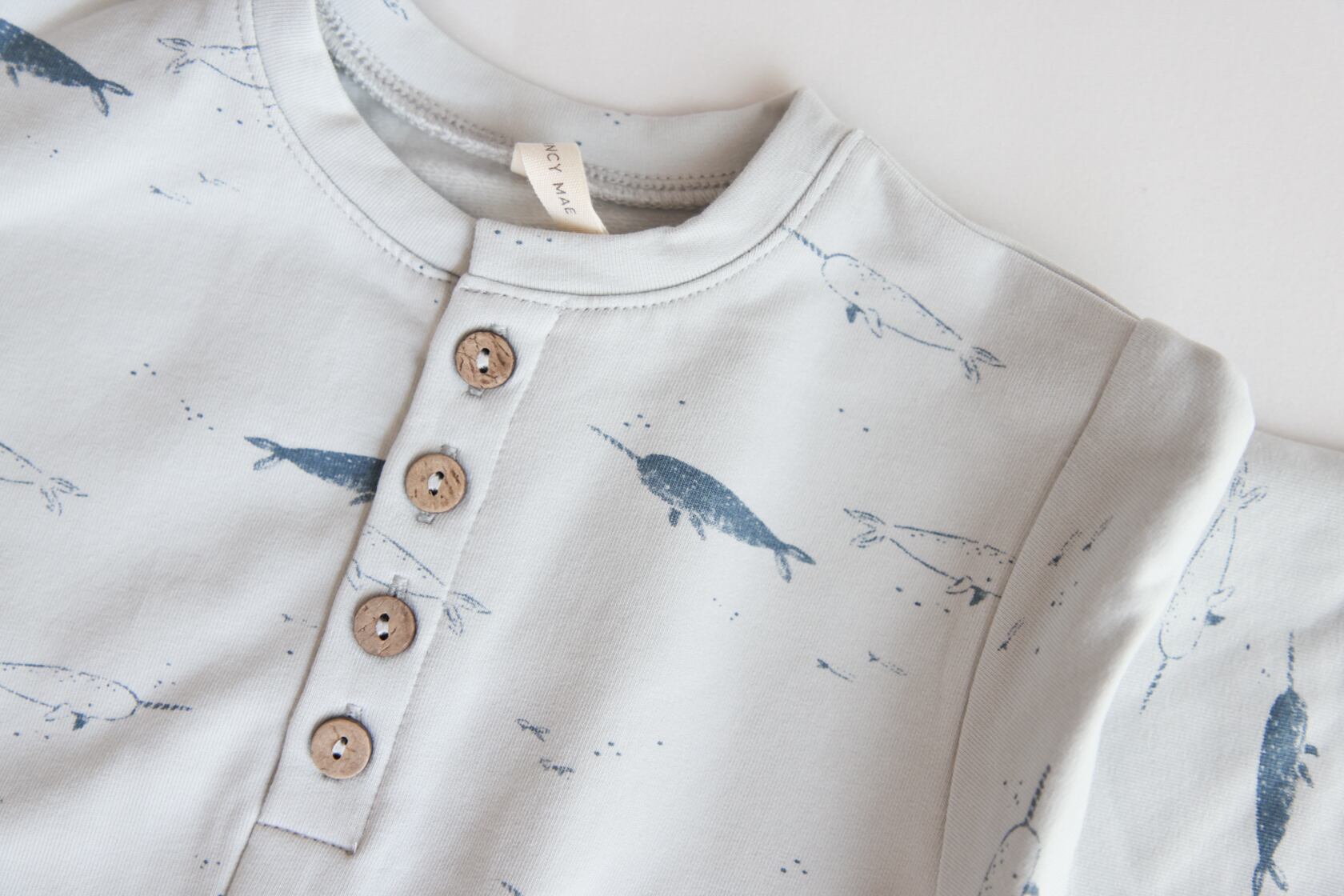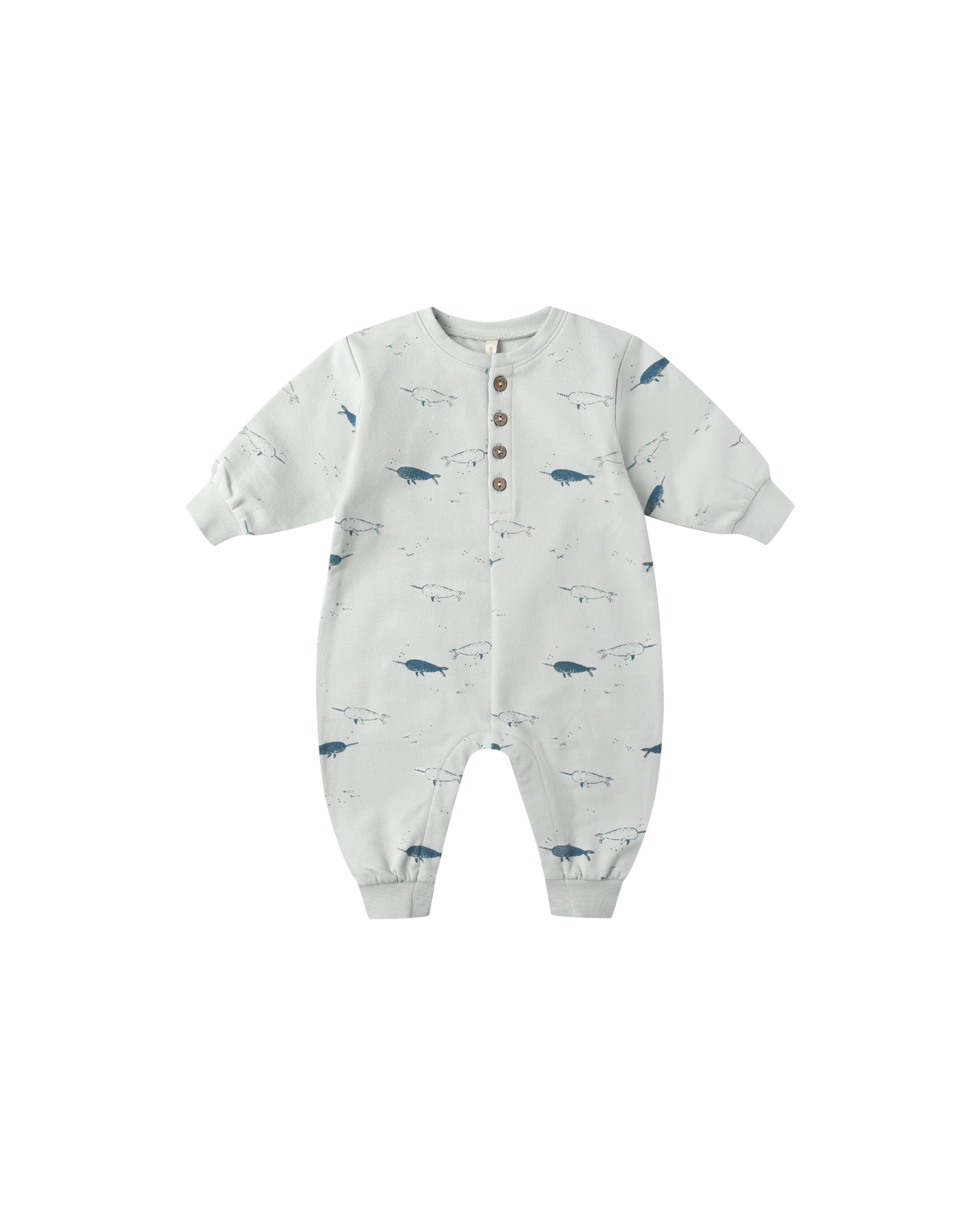 Quincy Mae(クインシーメイ)/ 25aw RELAXED FLEECE JUMPSUIT / NARWHALS / 6-12M