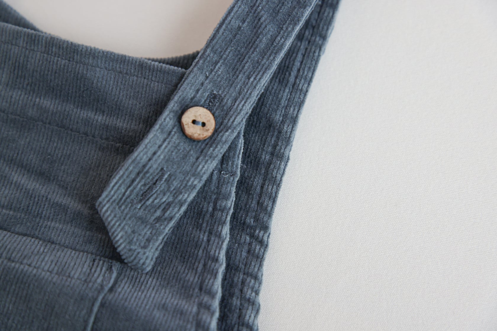 秋冬にぴったりなコーデュロイ素材のオーバーオール。