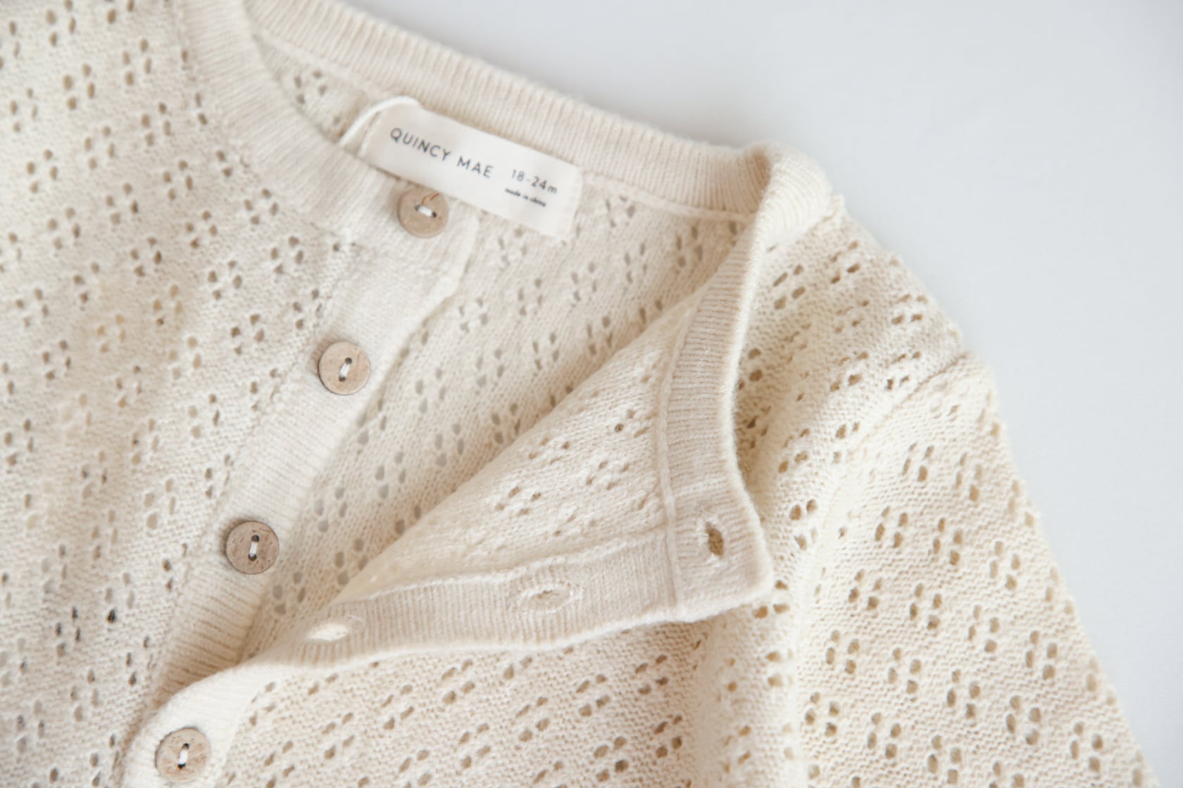 毎シーズン人気のあるQuincy Maeの透かし編みカーディガン。