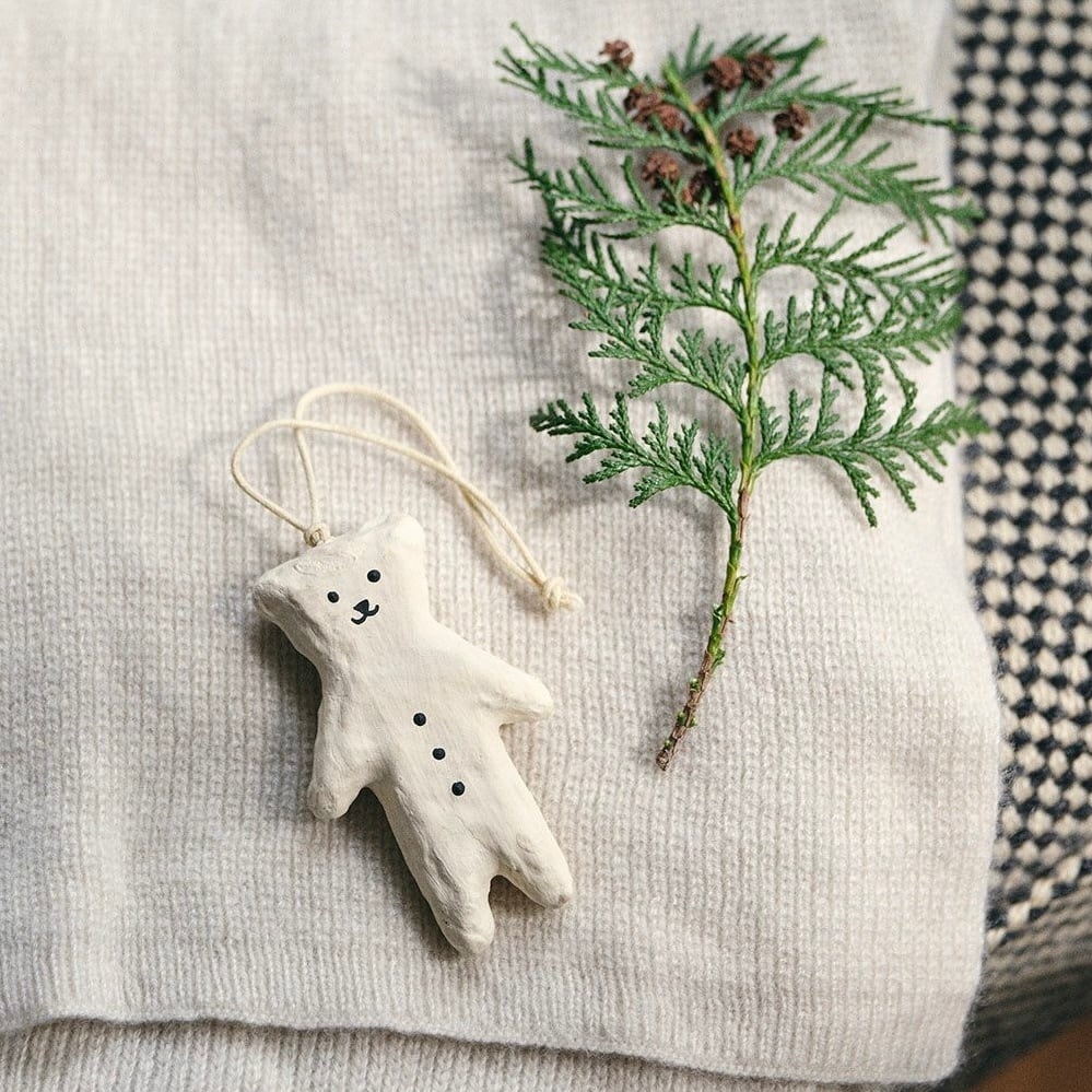 ほのぼのした表情がかわいい白くまのオーナメント。