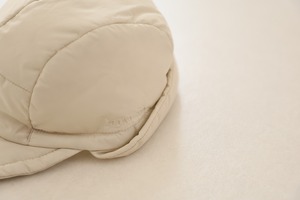 撥水性・防風性のある超軽量なリサイクルナイロン素材を使用し、保温性のある中綿入り、折り返せる耳当て付きで、とても軽く暖かいキャップです。