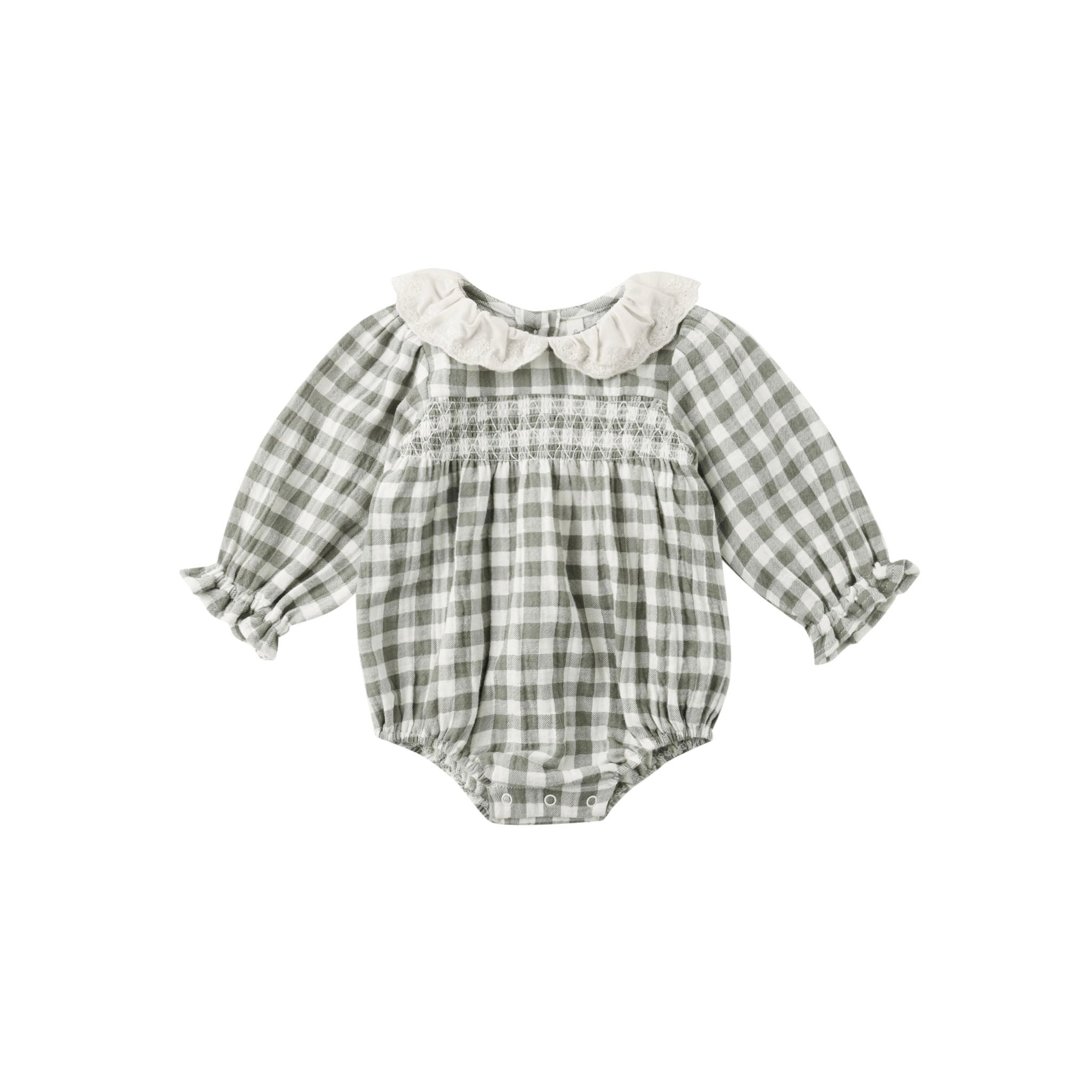 Quincy Mae(クインシーメイ) / 25aw CALLIE ROMPER / FOREST CHECK / 6-12M・12-18M
