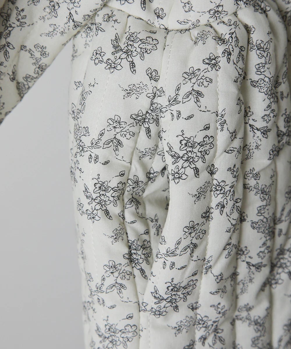 モノトーンで合わせやすい花柄プリントキルティングコート。