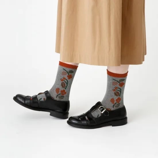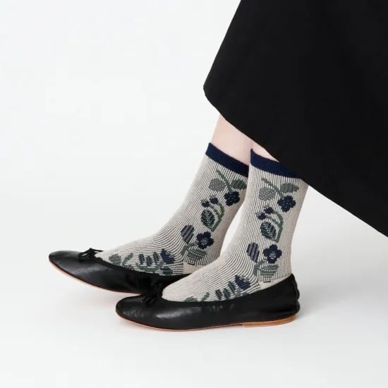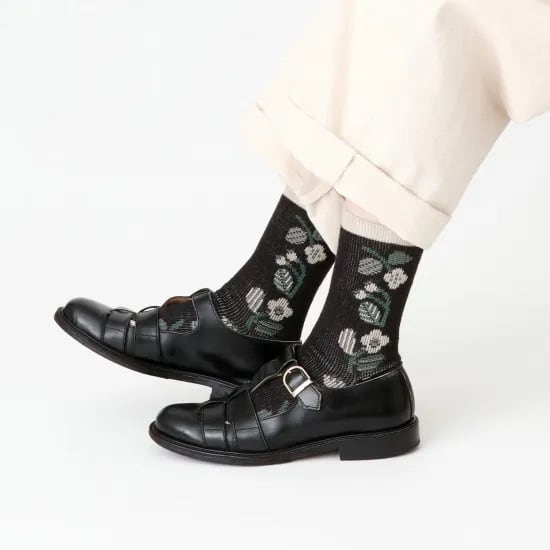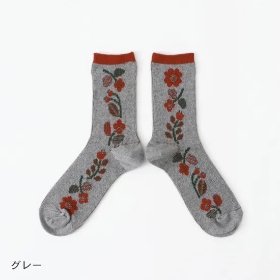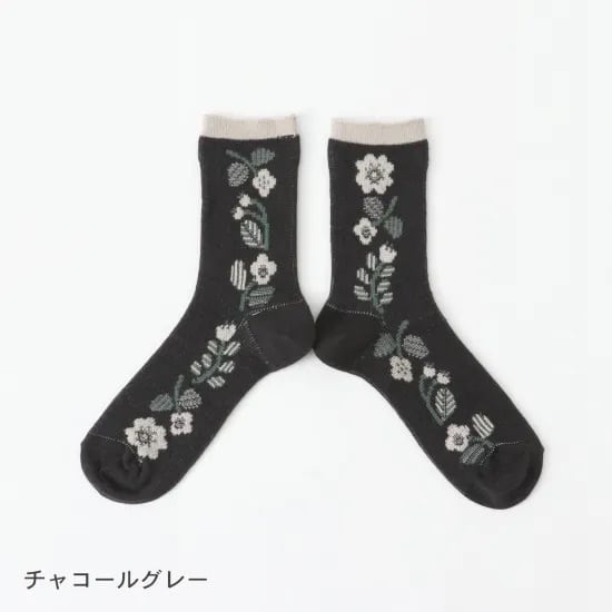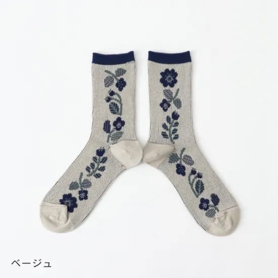 ナチュラルで優しい雰囲気の花柄が素敵な、ジャガード編みのソックスです。