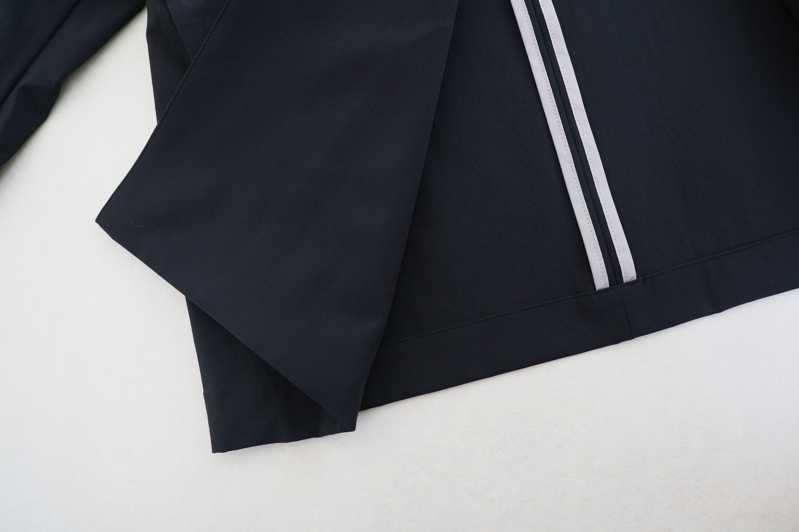 撥水性・ストレッチ性・リサイクルナイロンなどの機能性はそのままに、ゴワつきが少なく、よりストレッチ性の高い4wayストレッチウエザーに変更、フッ素を使用しないC0撥水に変更しています。