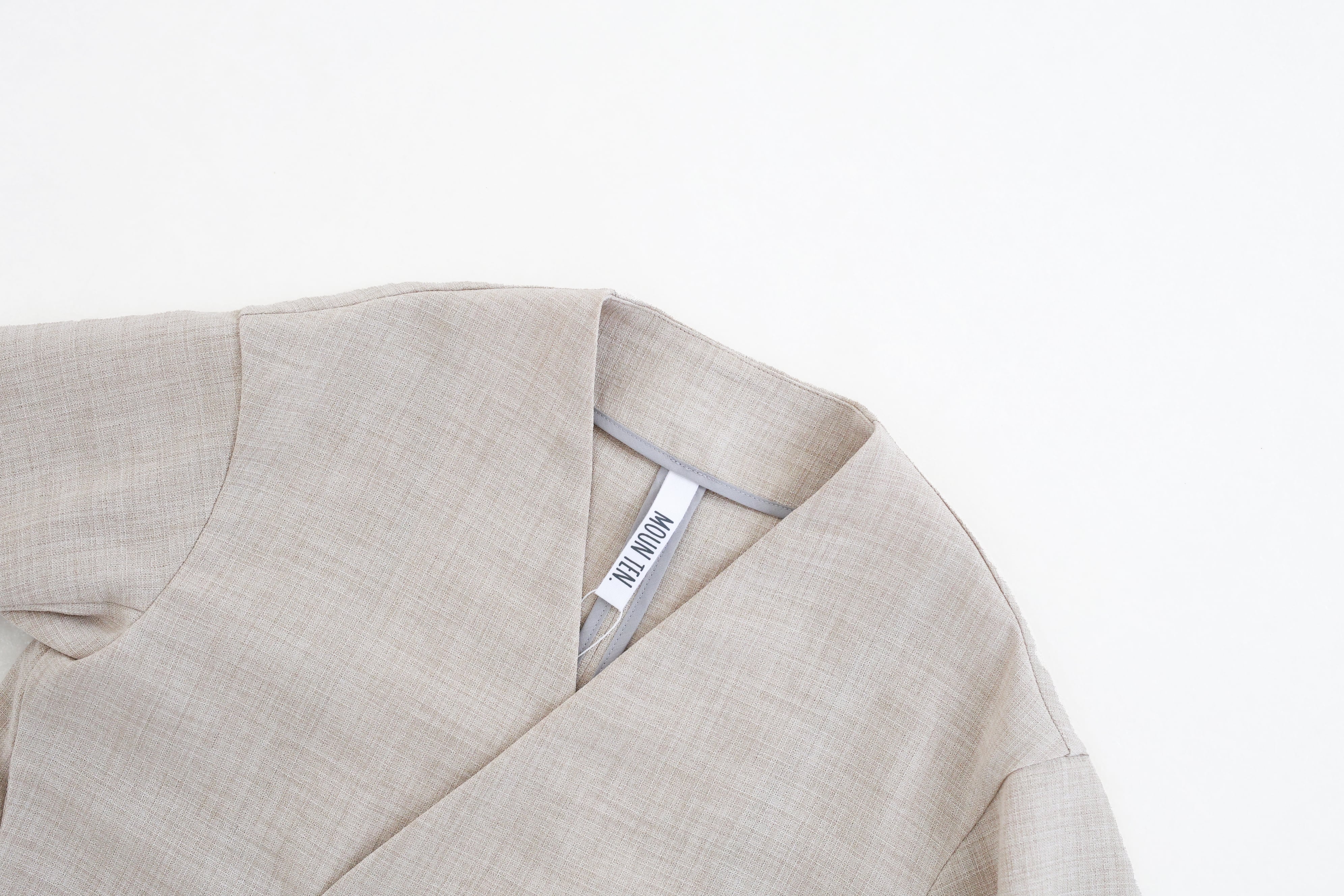 ざっくりとした麻の様な風合いのノーカラージャケット。
