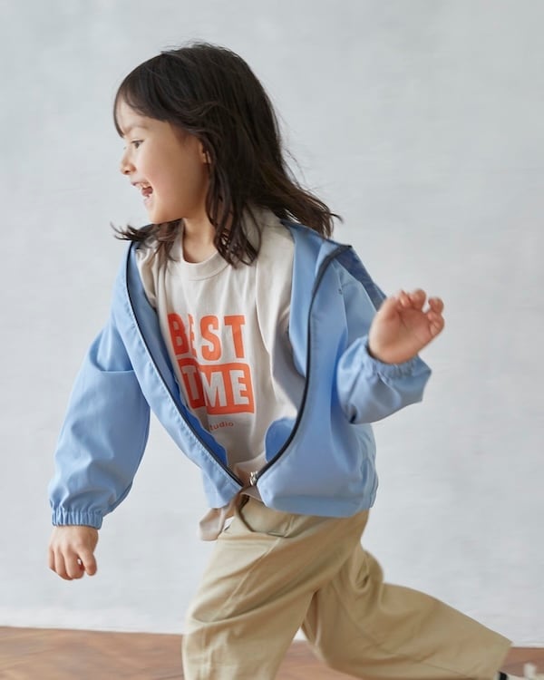 お出かけはもちろん、お子様の通園、通学にも使いやすい一着です。