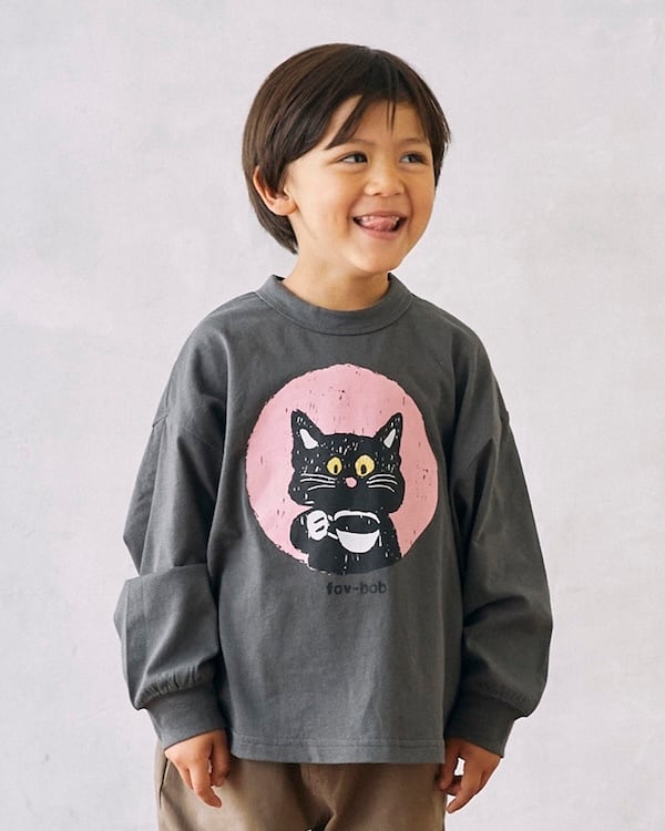 FOV(フォブ) / F/B cat L/S Tシャツ / チャコールグレー / 90-130cm
