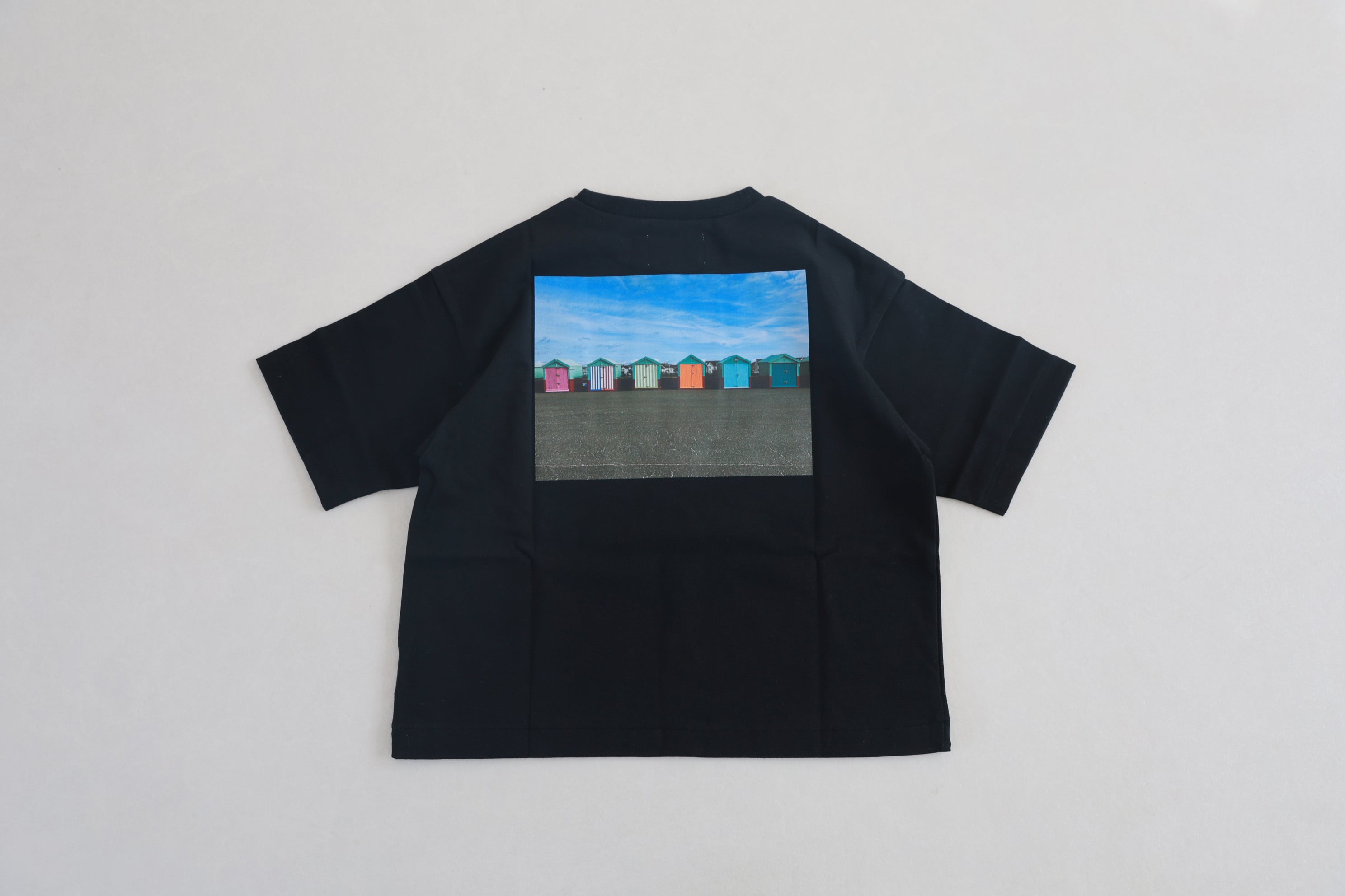 ワイドシルエットのプリントTシャツ。