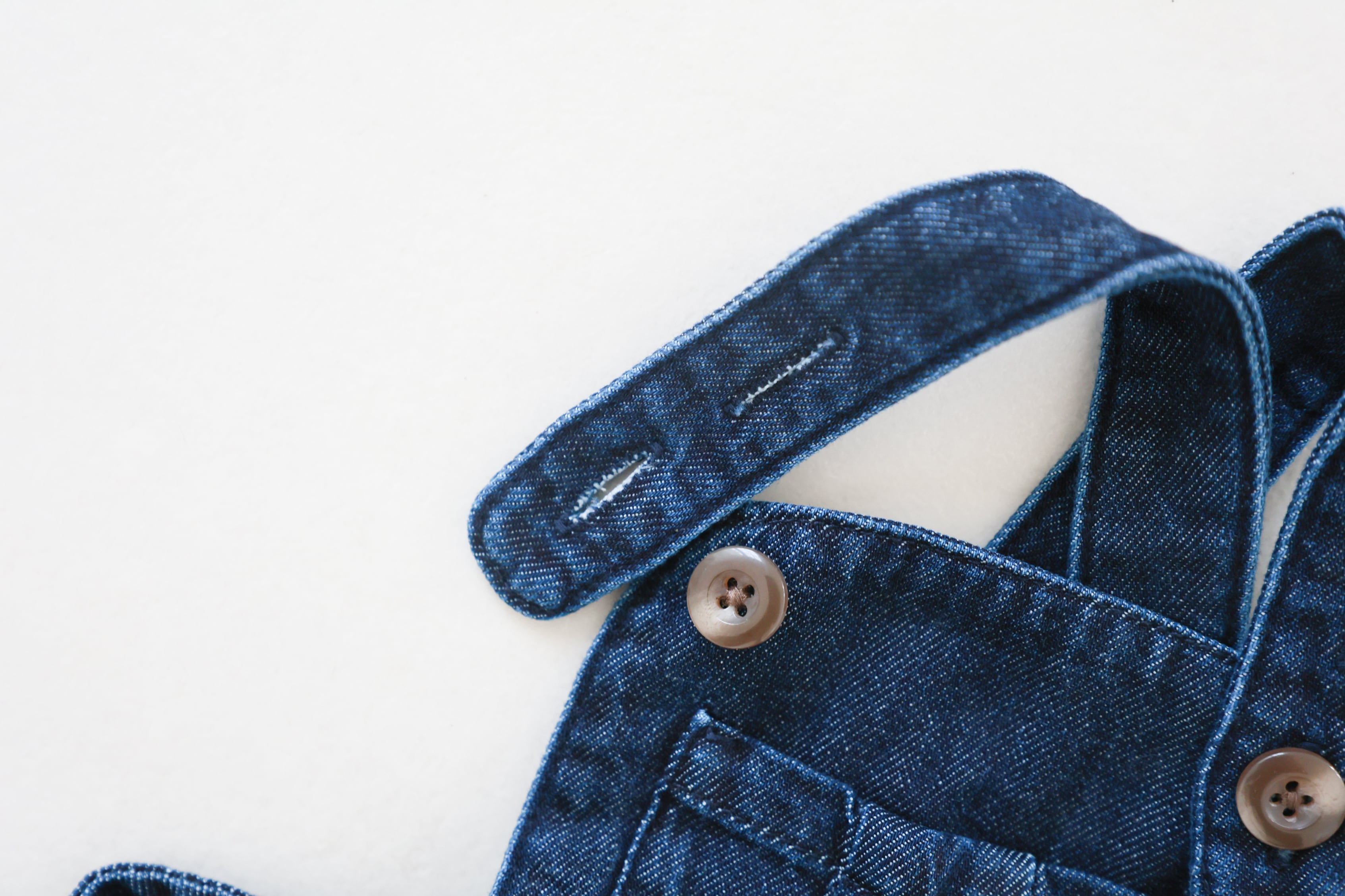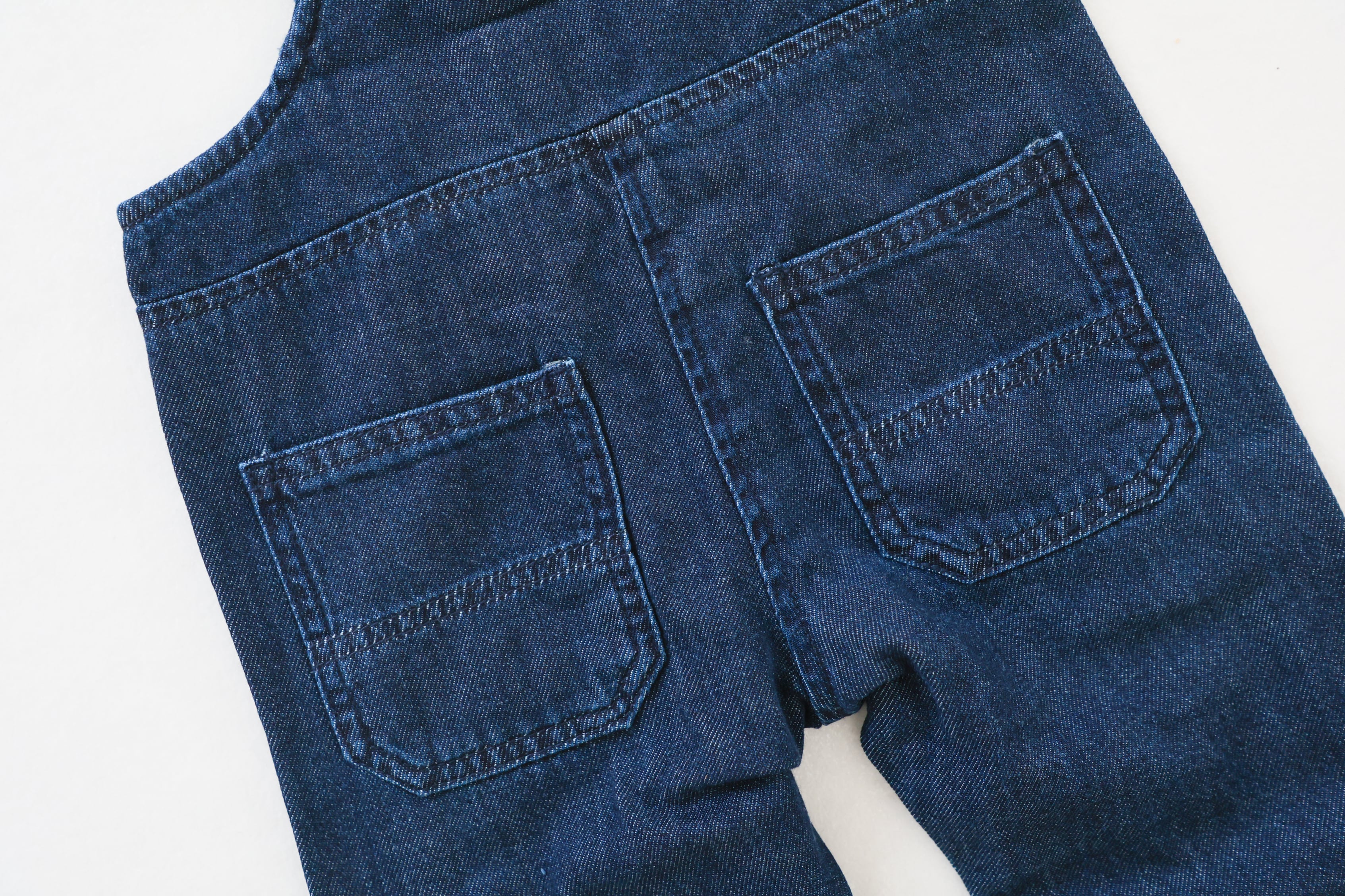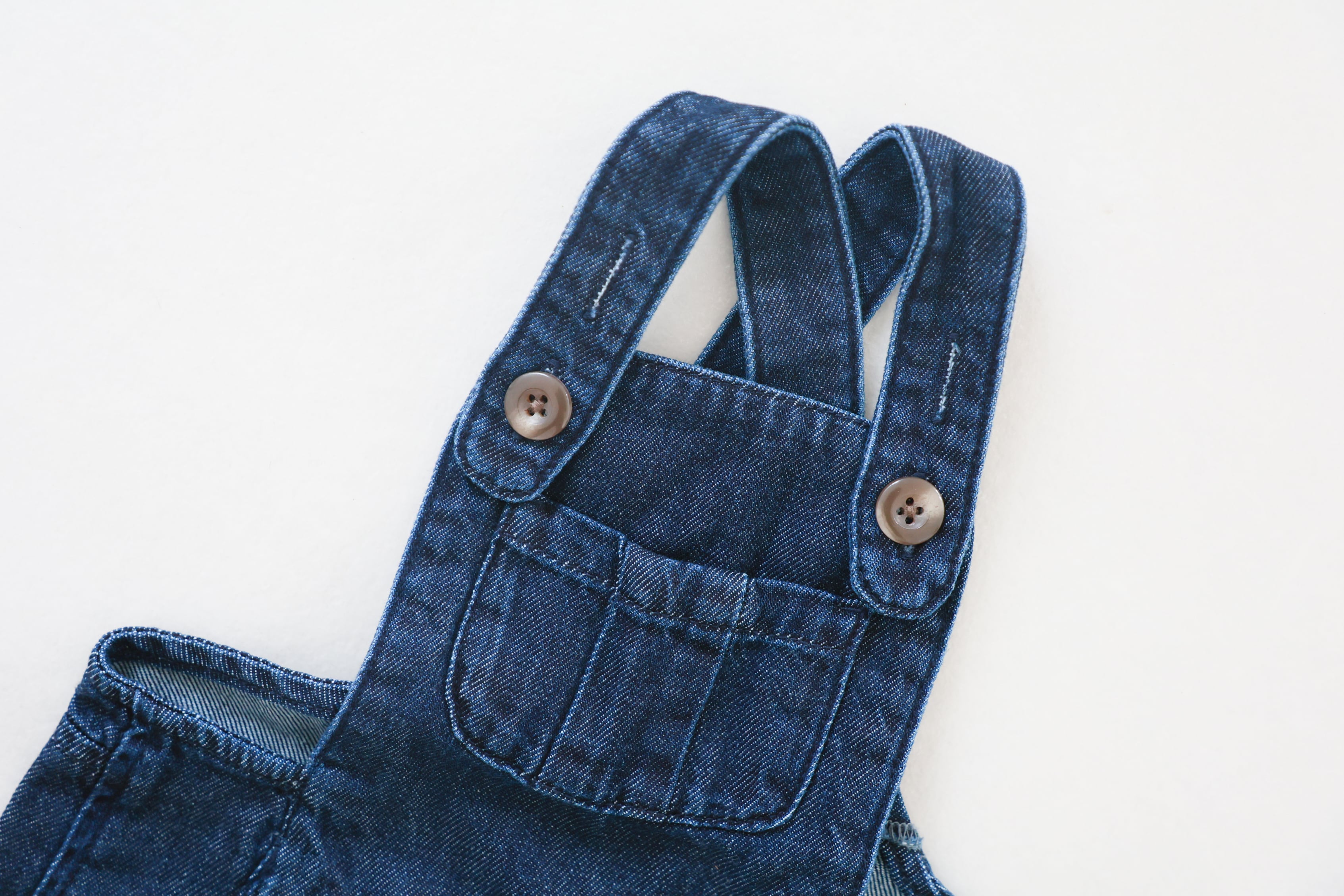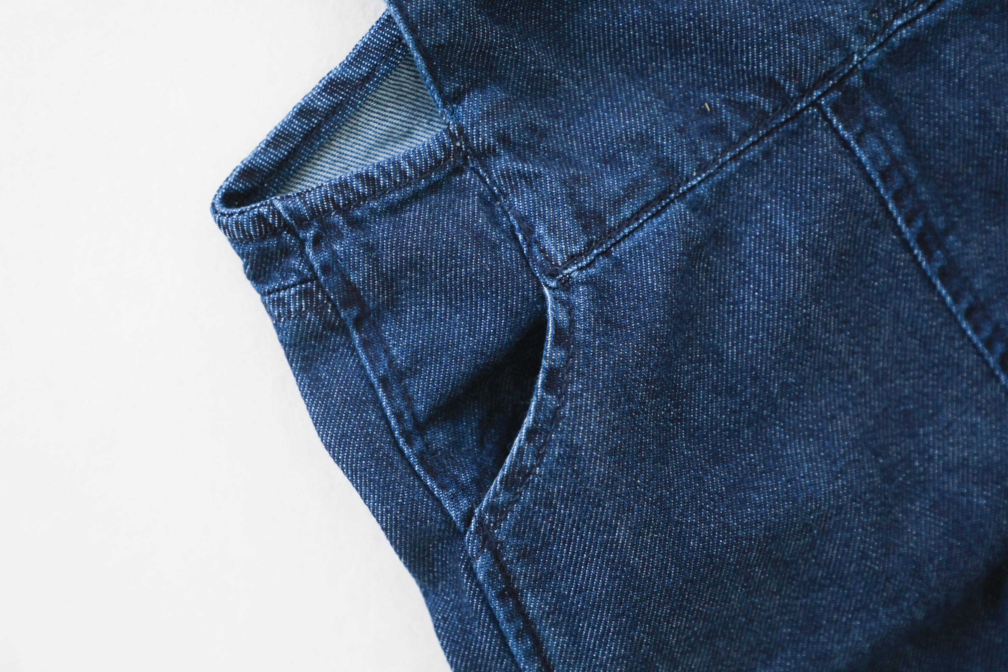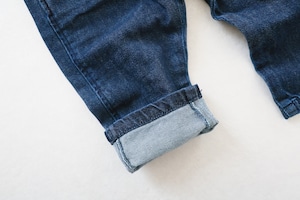 ワーク感のあるデニムサロペットですが、肩紐やポケットなどの角に丸みを持たせることで