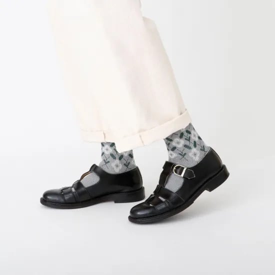 足首部分にはパッと目を引くフラワーモチーフと
