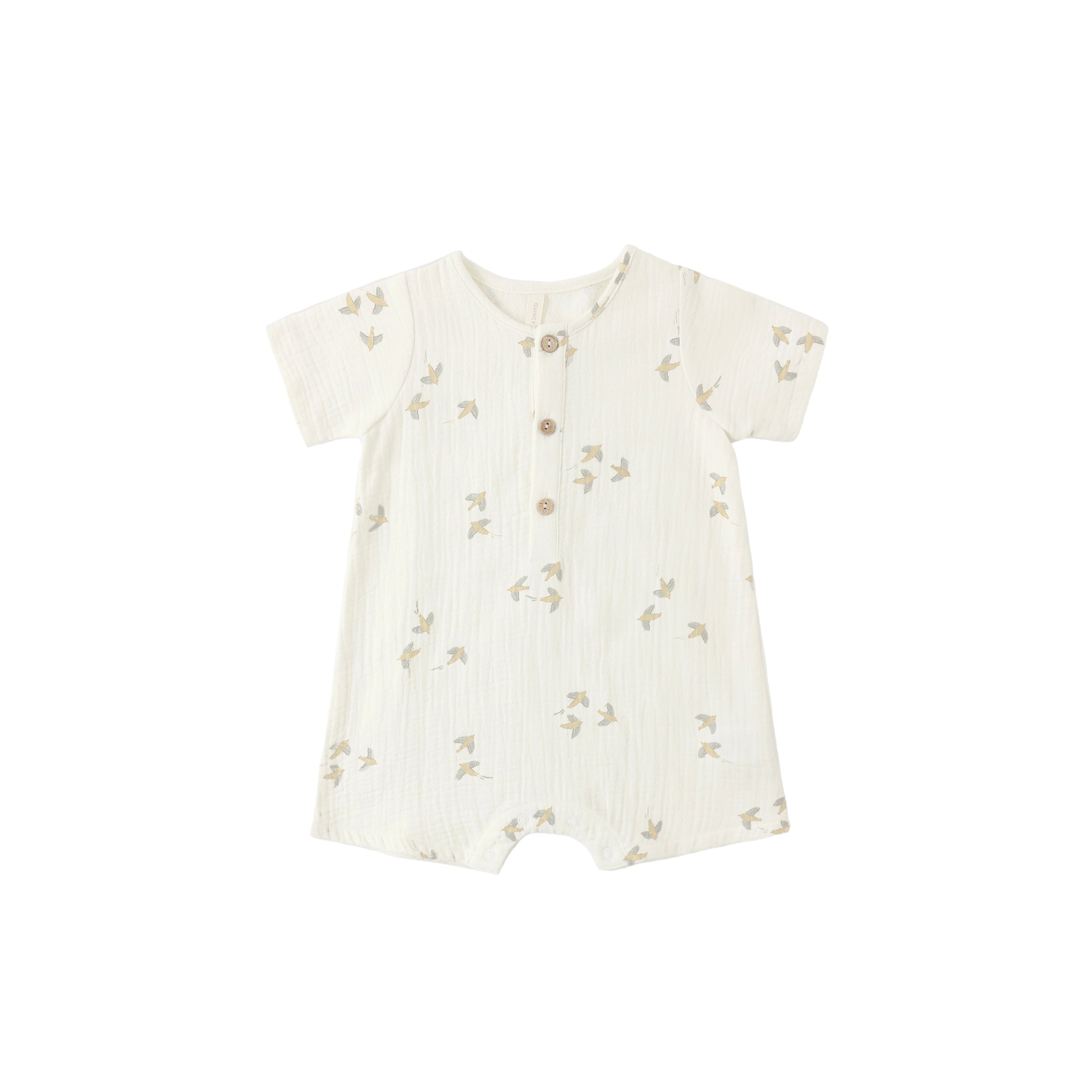 Quincy Mae(クインシーメイ) / 26ss SHORT SLEEVE WOVEN ROMPER / BIRDS / 12-18M・18-24M