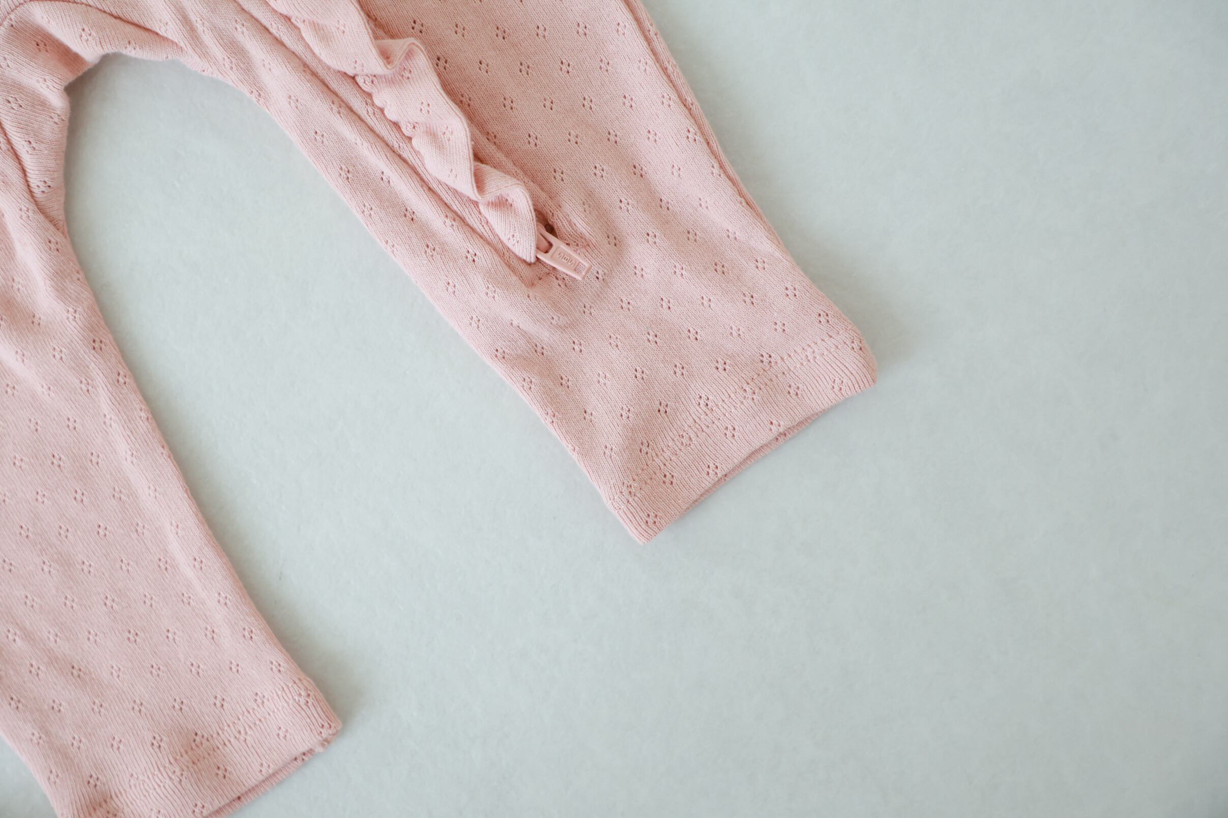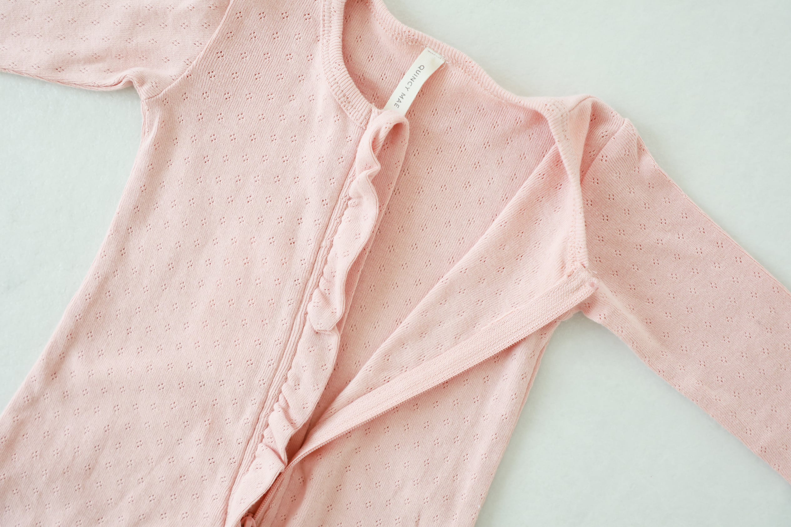 優しい色合いと雰囲気がQuincy Maeらしいロンパース。