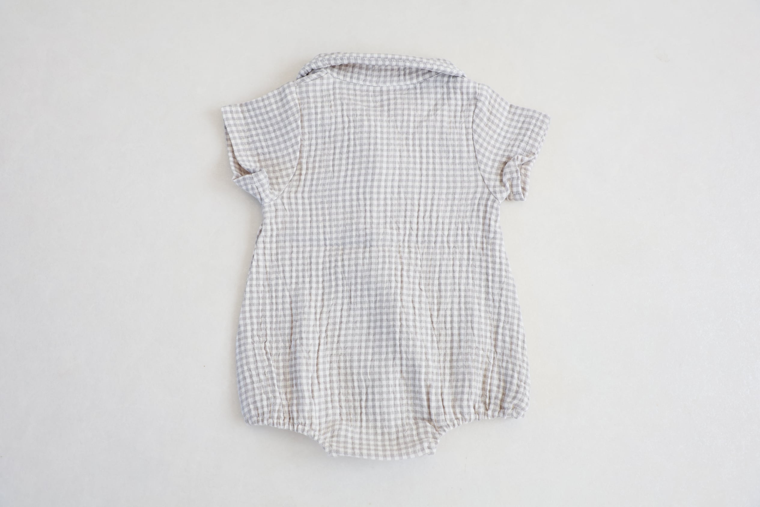 落ち着いたカラーリングとチェック柄が可愛らしいロンパース。