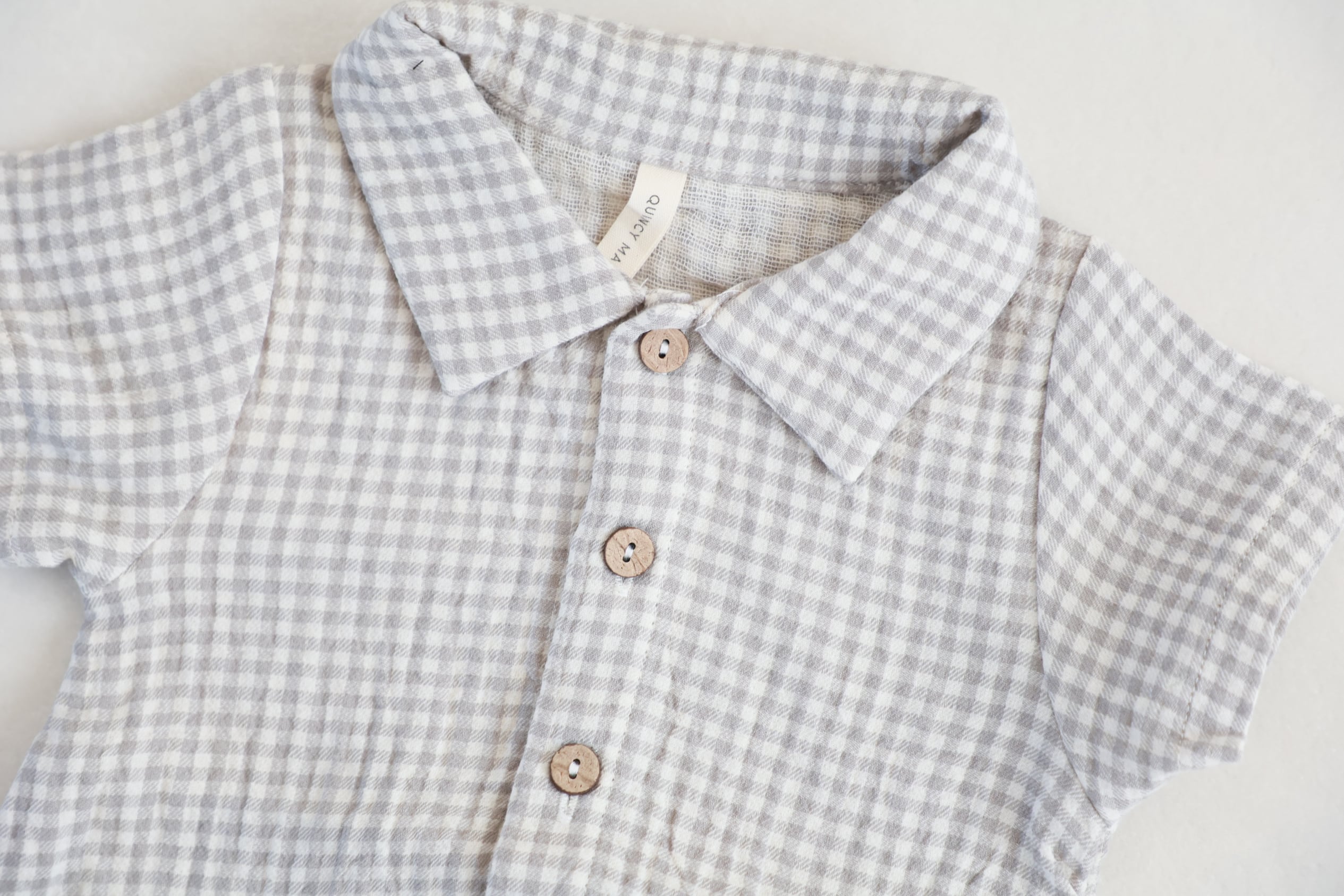 Quincy Mae(クインシーメイ) /26ss MATTEO ROMPER / SAGE GINGHAM / 6-12M・12-18M