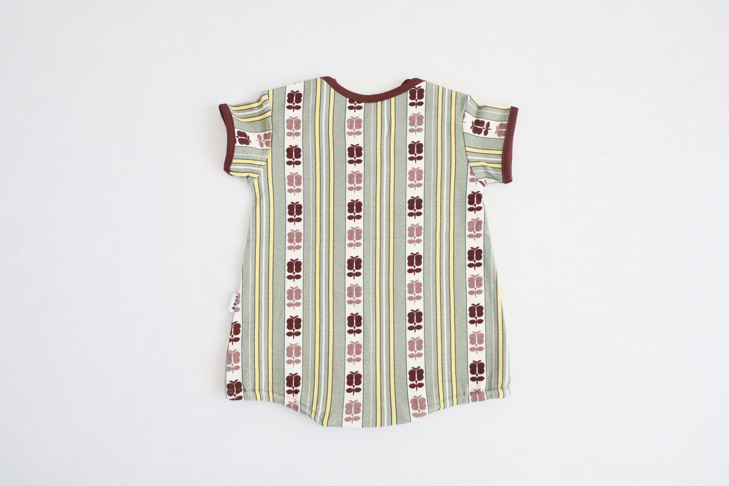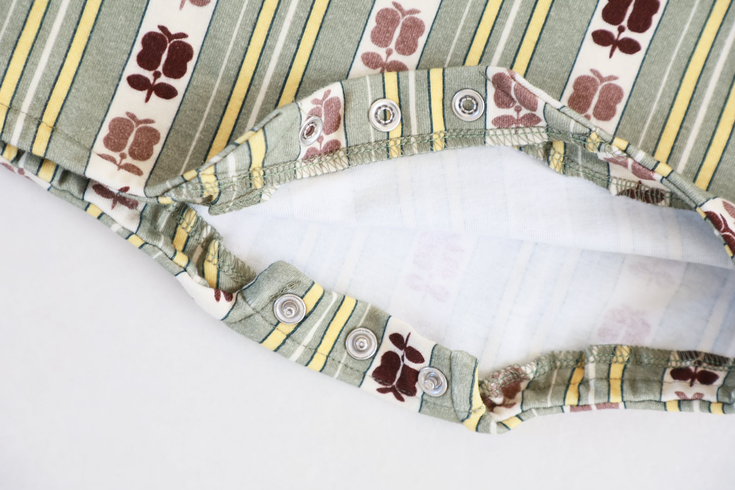 柔らかい肌触りのいいストレッチの入った生地で、前開きのデザインでお着替えもオムツ替えも楽チンです。