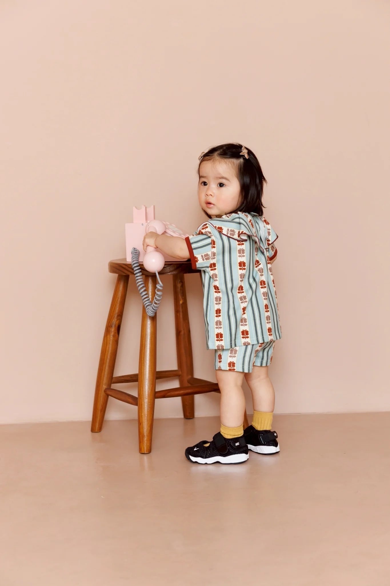 レトロなプリントが可愛らしいスタイ。
